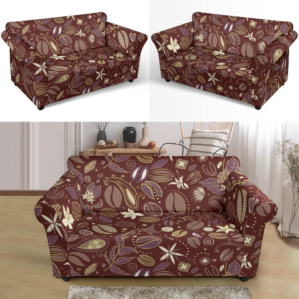 Coffee Bean Flower Pattern Loveseat Couch Slipcover