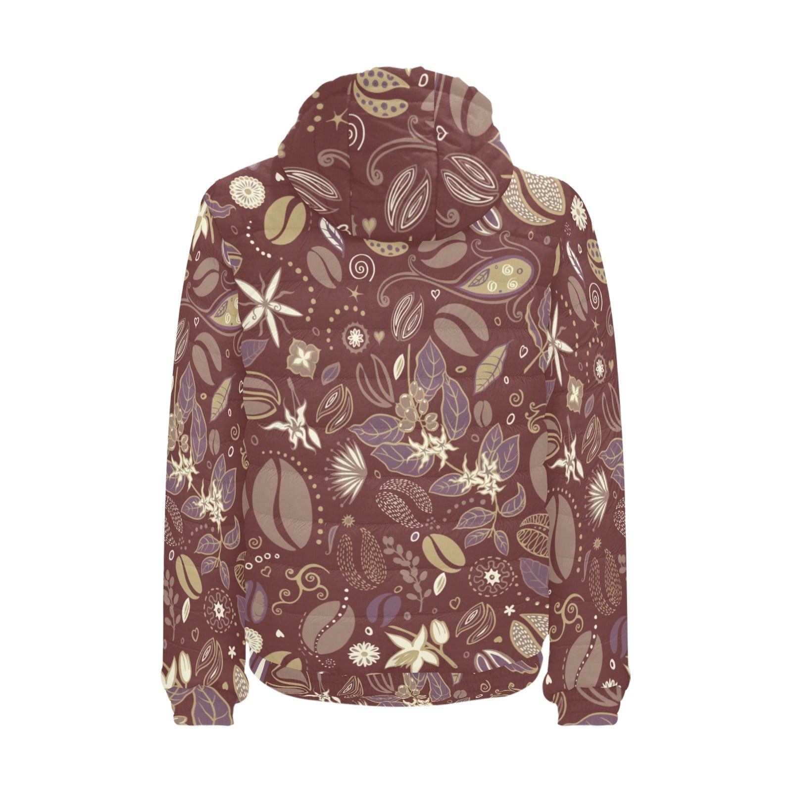 Coffee bean flower pattern Men's Padded Hooded Jacket