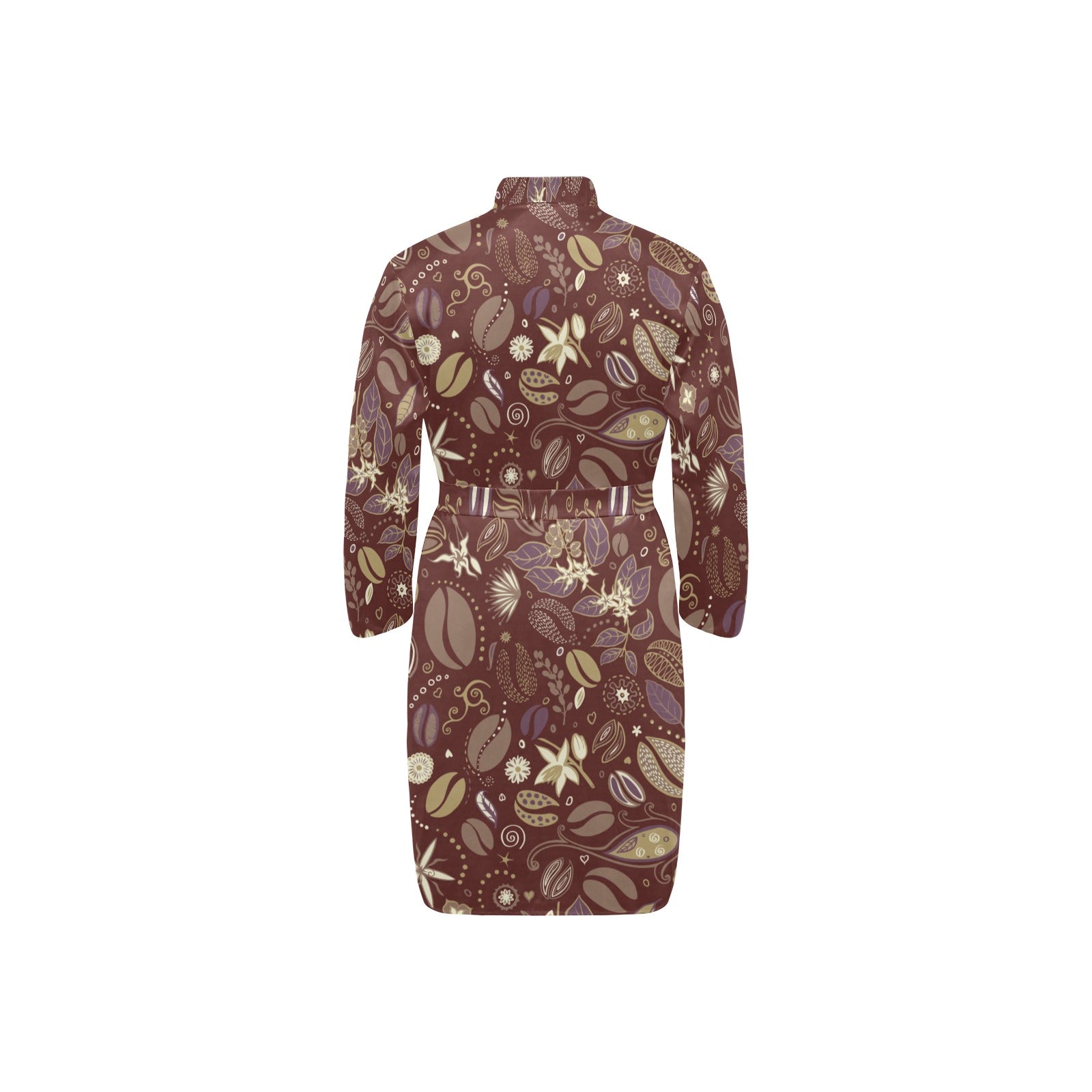 Coffee bean flower pattern Men's Long Sleeve Belted Night Robe