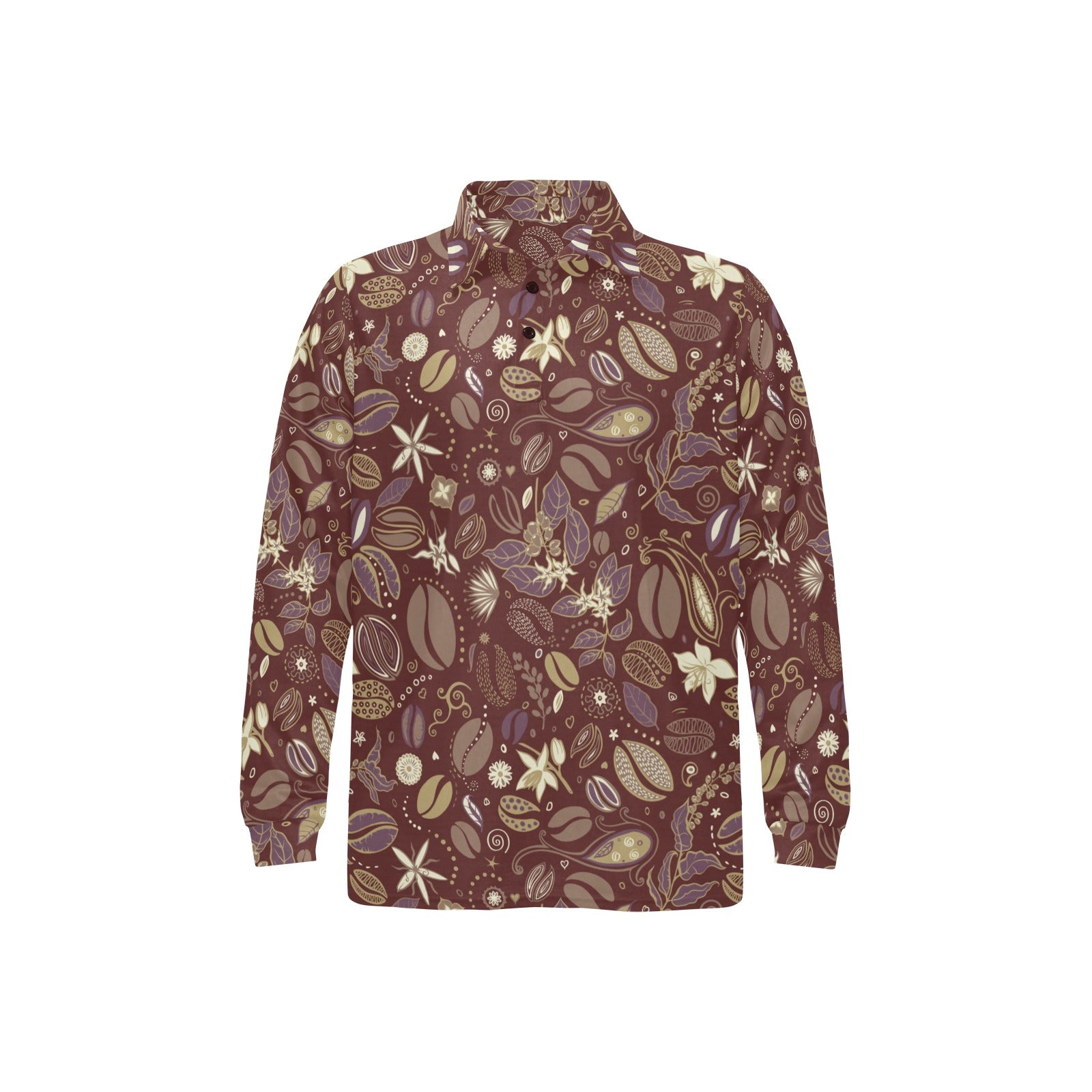Coffee bean flower pattern Men's Long Sleeve Polo Shirt