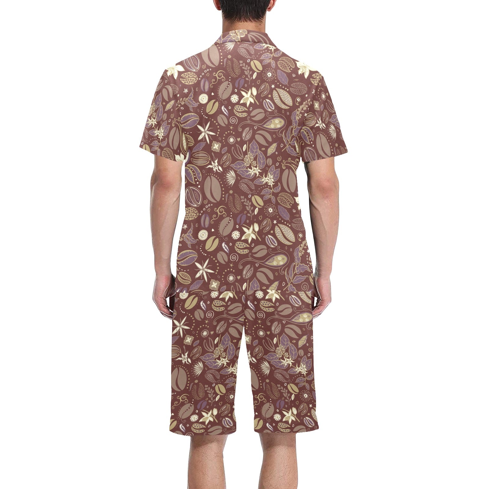 Coffee bean flower pattern Men's V-Neck Short Pajama Set