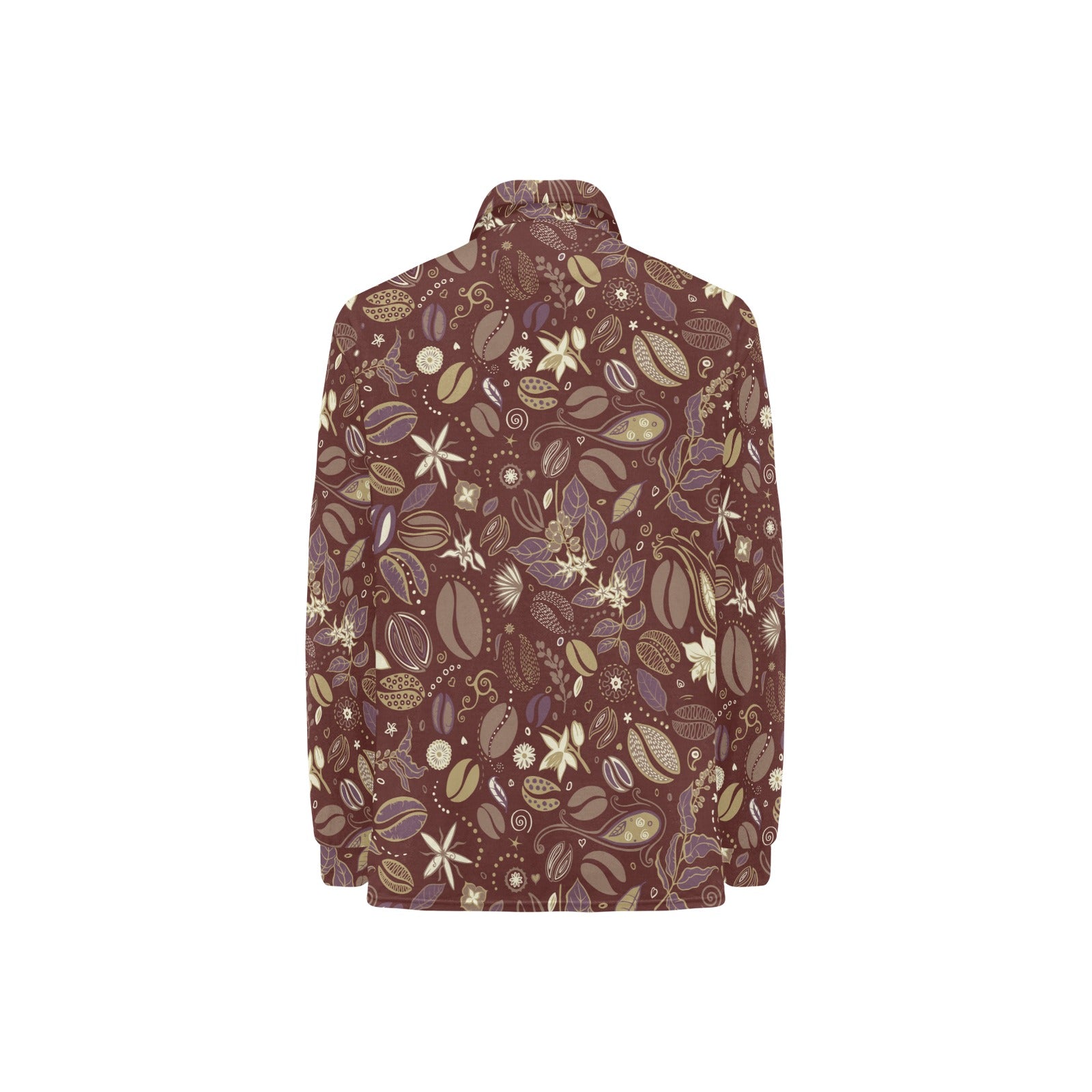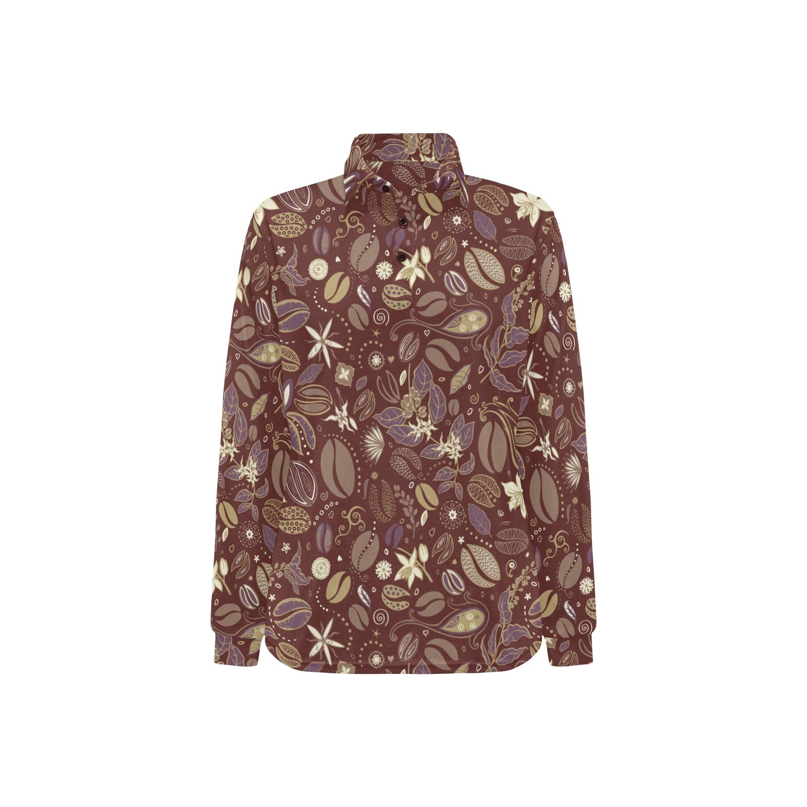 Coffee bean flower pattern Women's Long Sleeve Polo Shirt