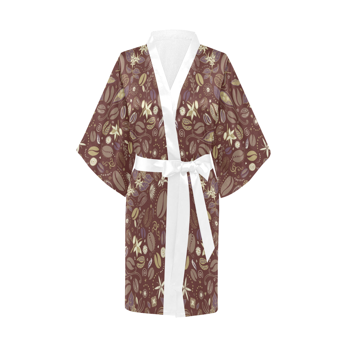 Coffee bean flower pattern Women's Short Kimono Robe is a uniqued design and limited item. It made to order, hand printed, and sewn with love in our factory.