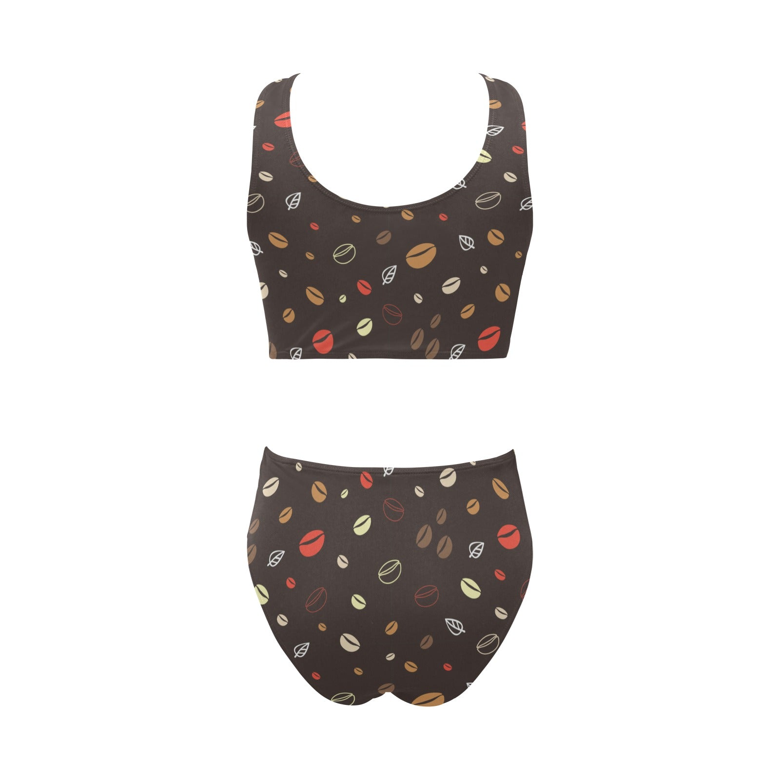 Coffee bean leave pattern Chest Bowknot High Waisted Bikini Swimsuit