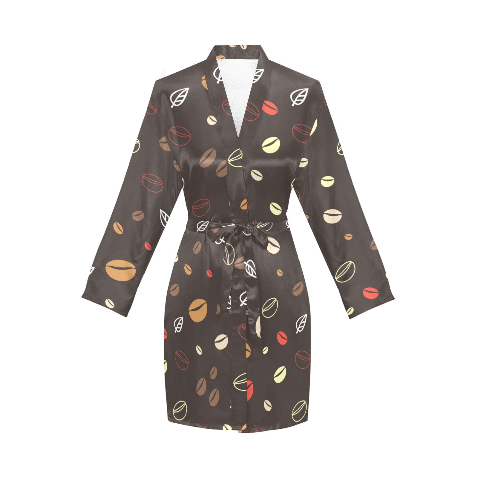 Coffee bean leave pattern Women's Long Sleeve Belted Night Robe