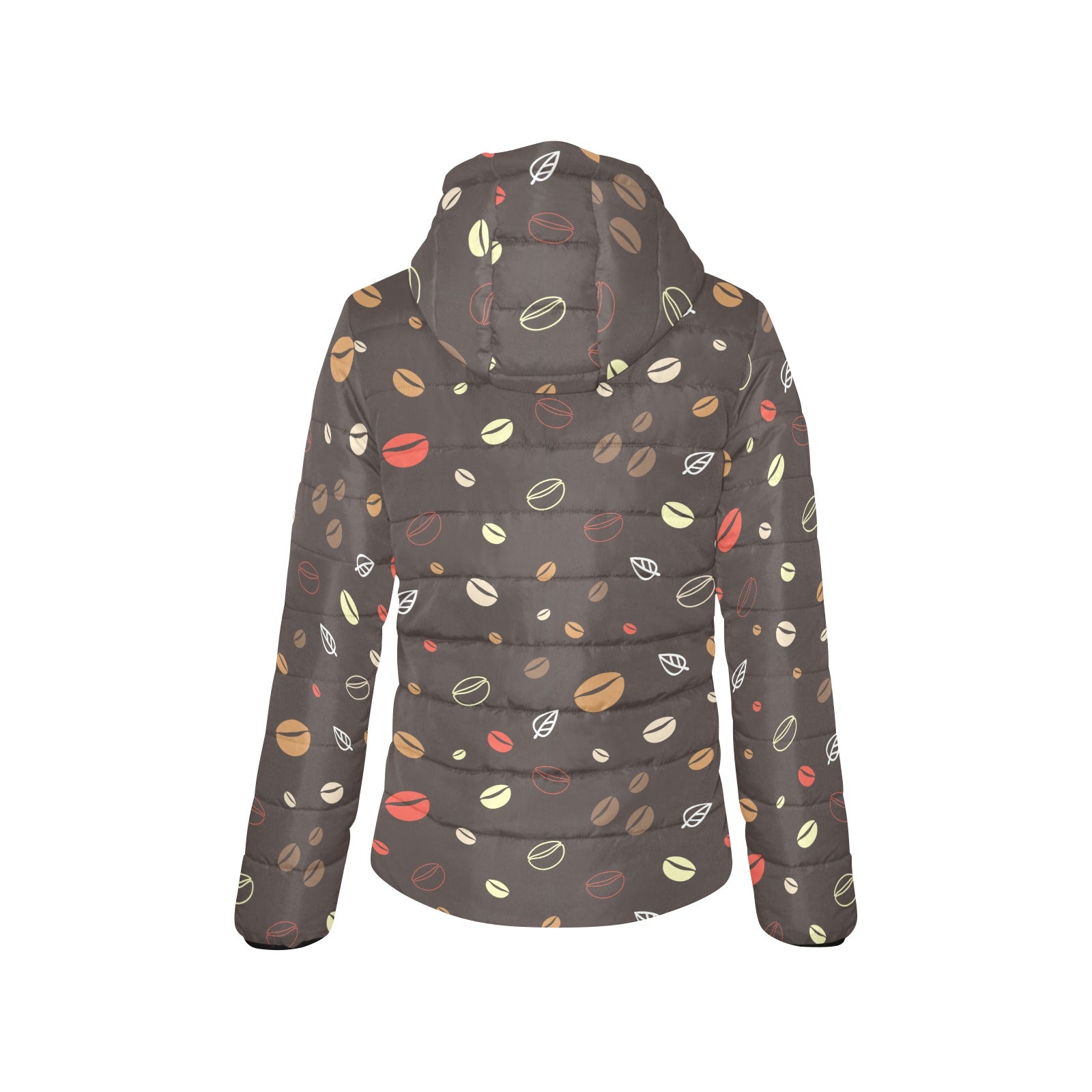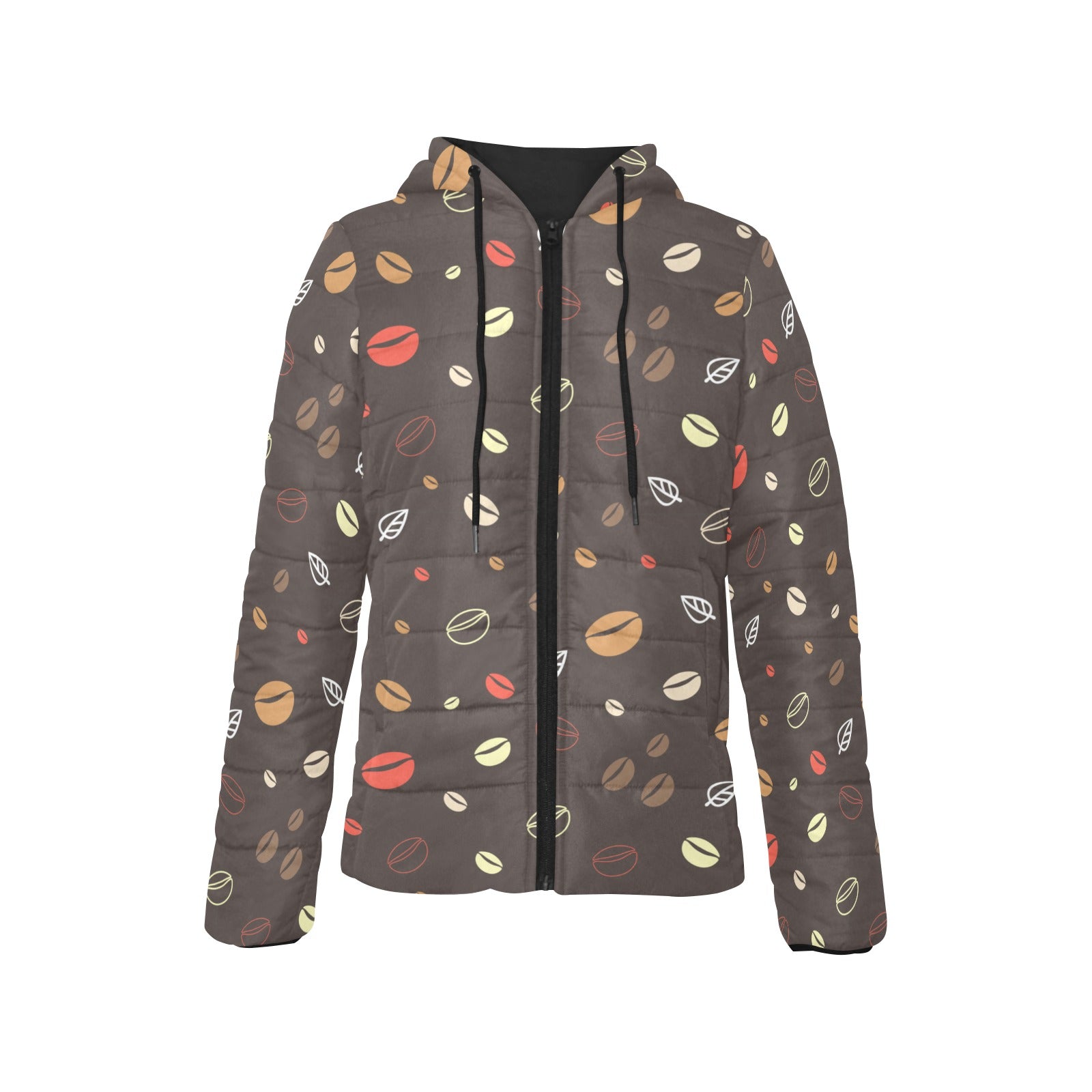 Coffee bean leave pattern Women's Padded Hooded Jacket