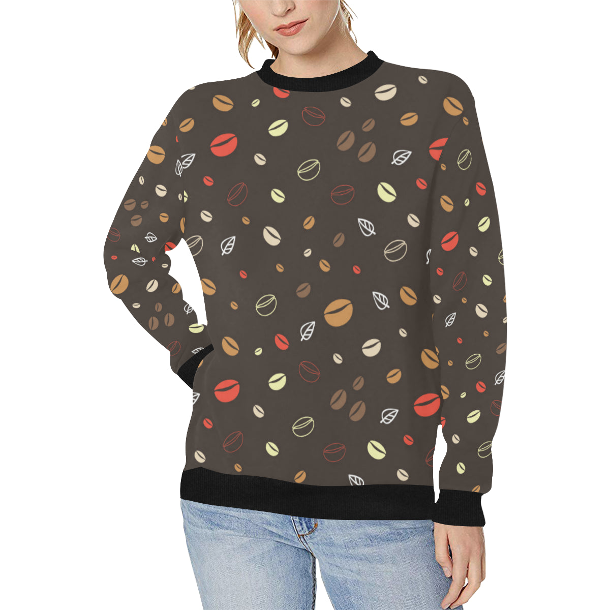 Coffee bean leave pattern Women's Crew Neck Sweatshirt