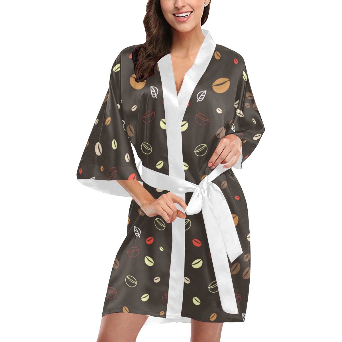 Coffee bean leave pattern Women's Short Kimono Robe is a uniqued design and limited item. It made to order, hand printed, and sewn with love in our factory.