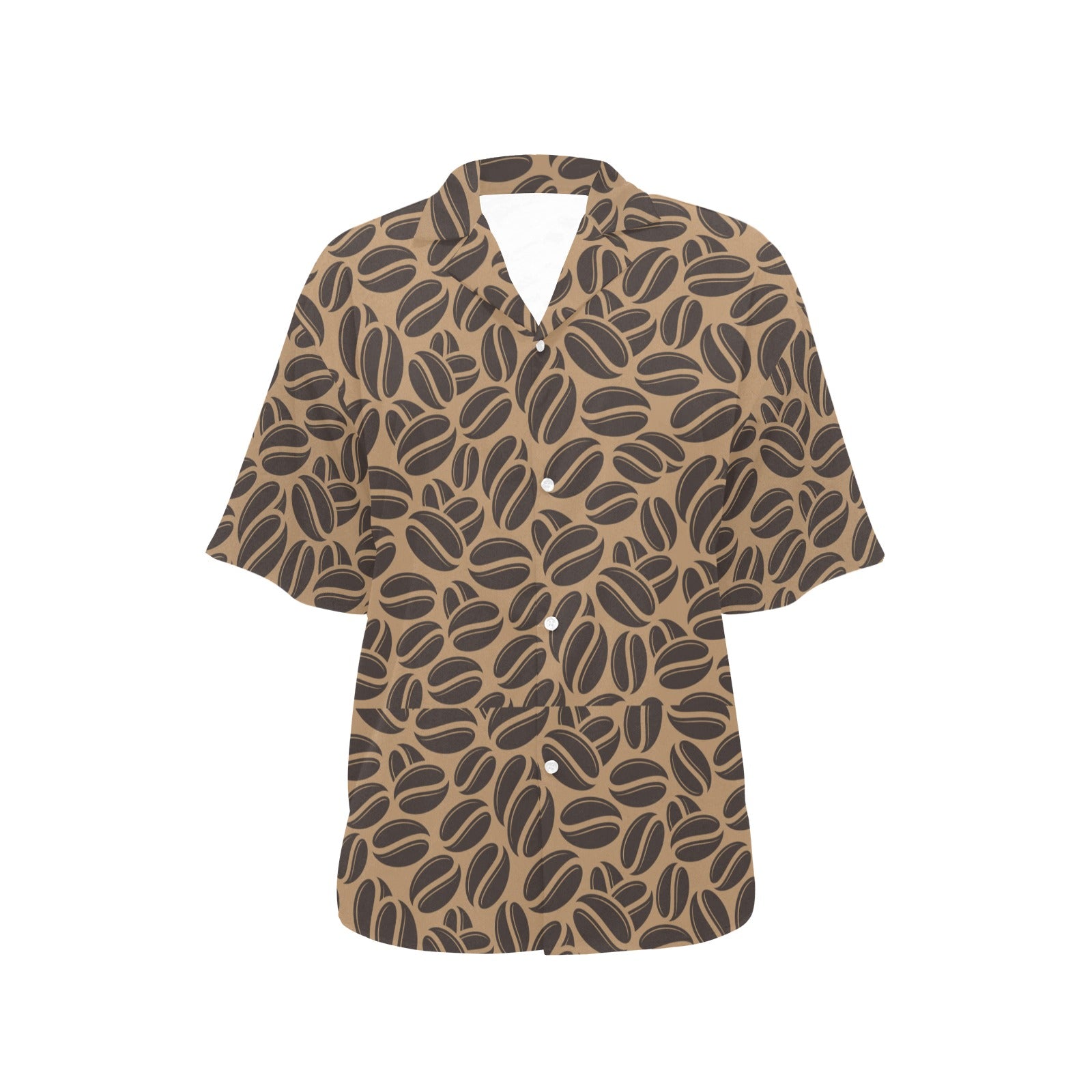 Coffee bean on brown background Women's All Over Print Hawaiian Shirt