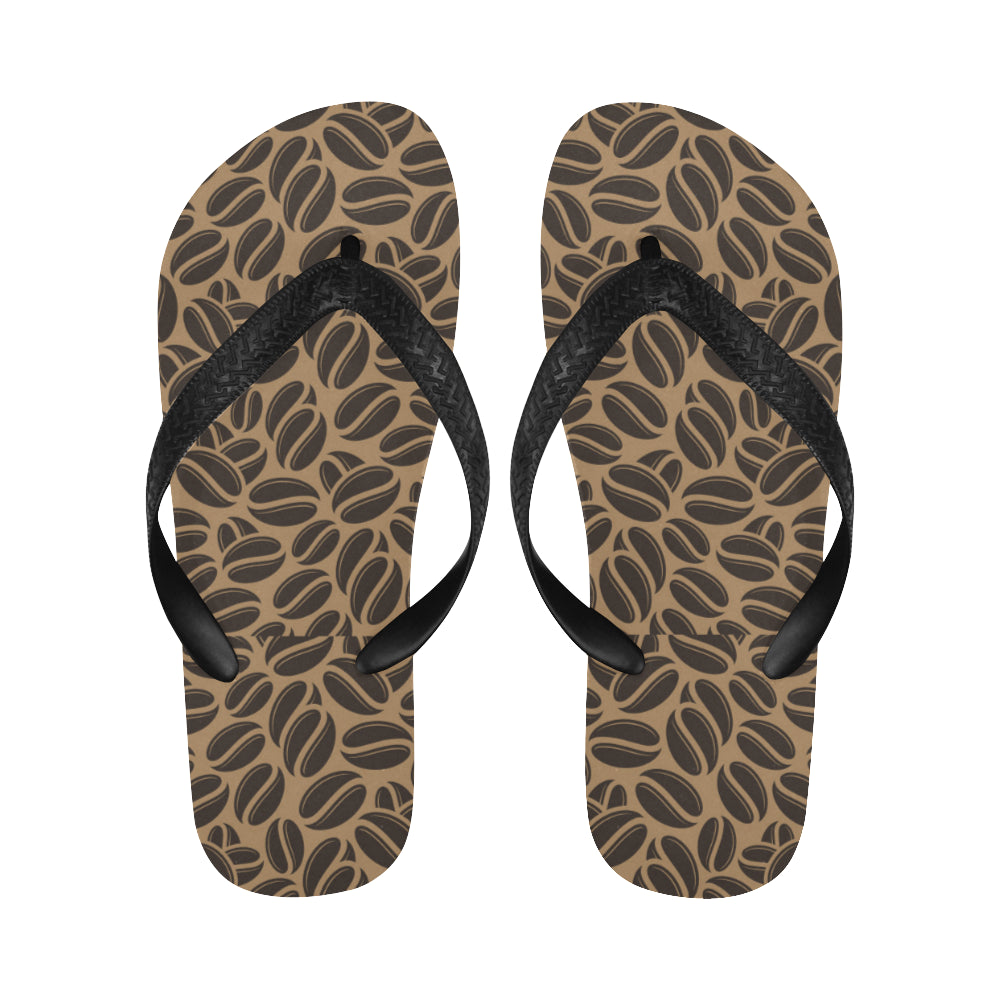Coffee bean on brown background Unisex Flip Flops is a uniqued design and limited item. It made to order, hand printed, and sewn with love in our factory.