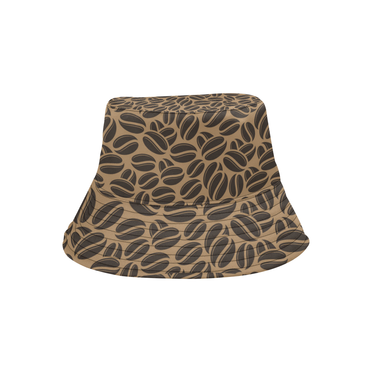 Coffee bean on brown background Unisex Bucket Hat is a uniqued design and limited item. It made to order, hand printed, and sewn with love in our factory.