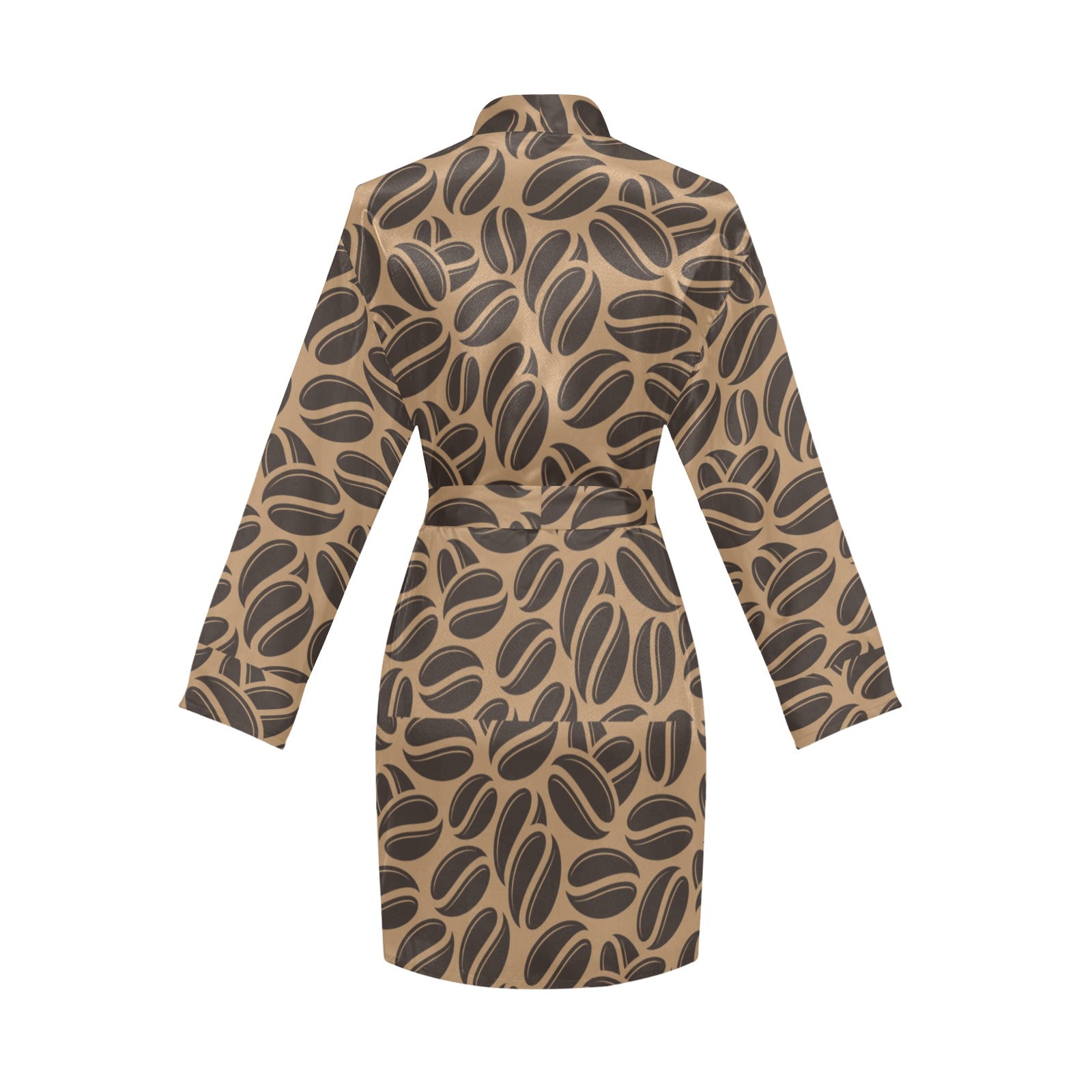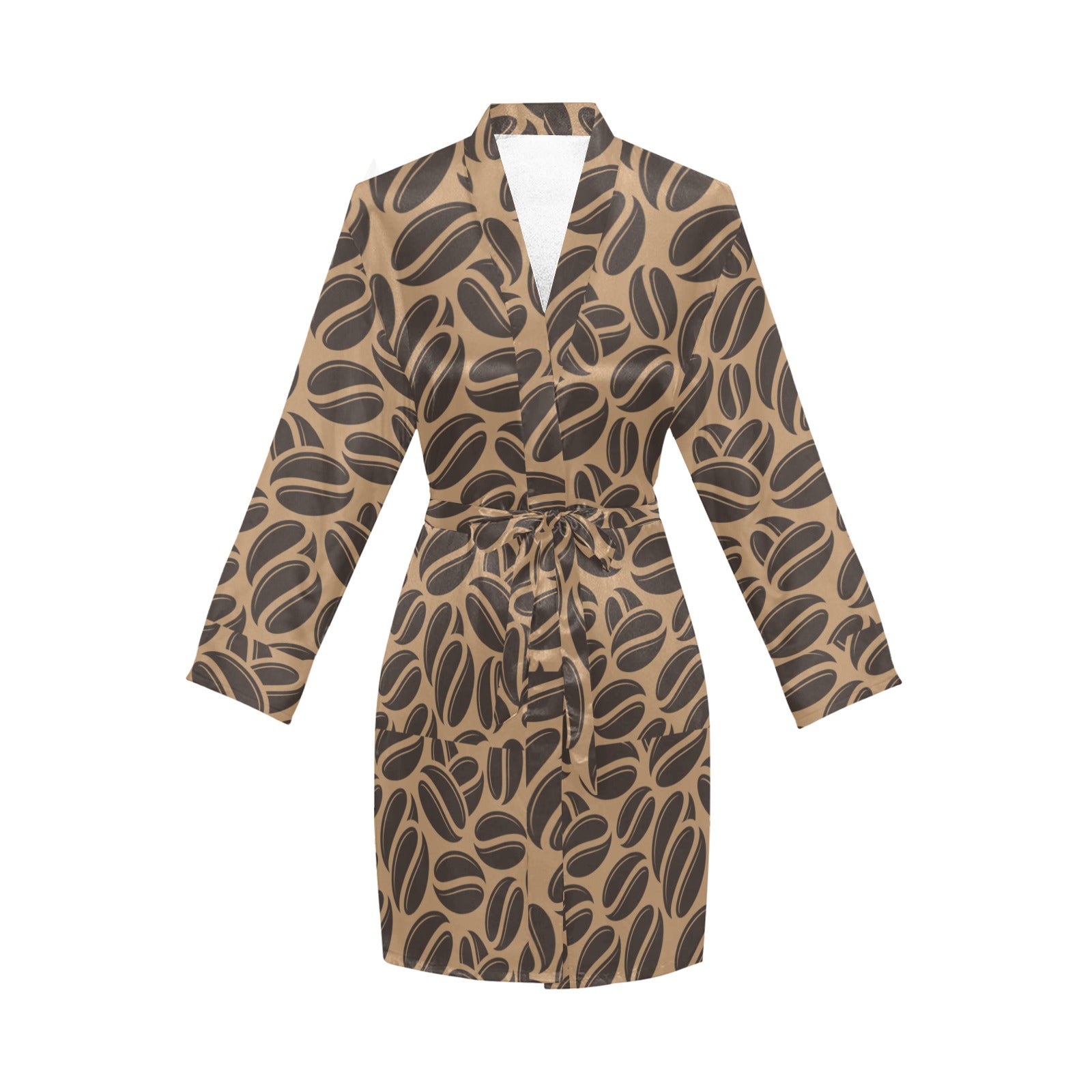 Coffee bean on brown background Women's Long Sleeve Belted Night Robe
