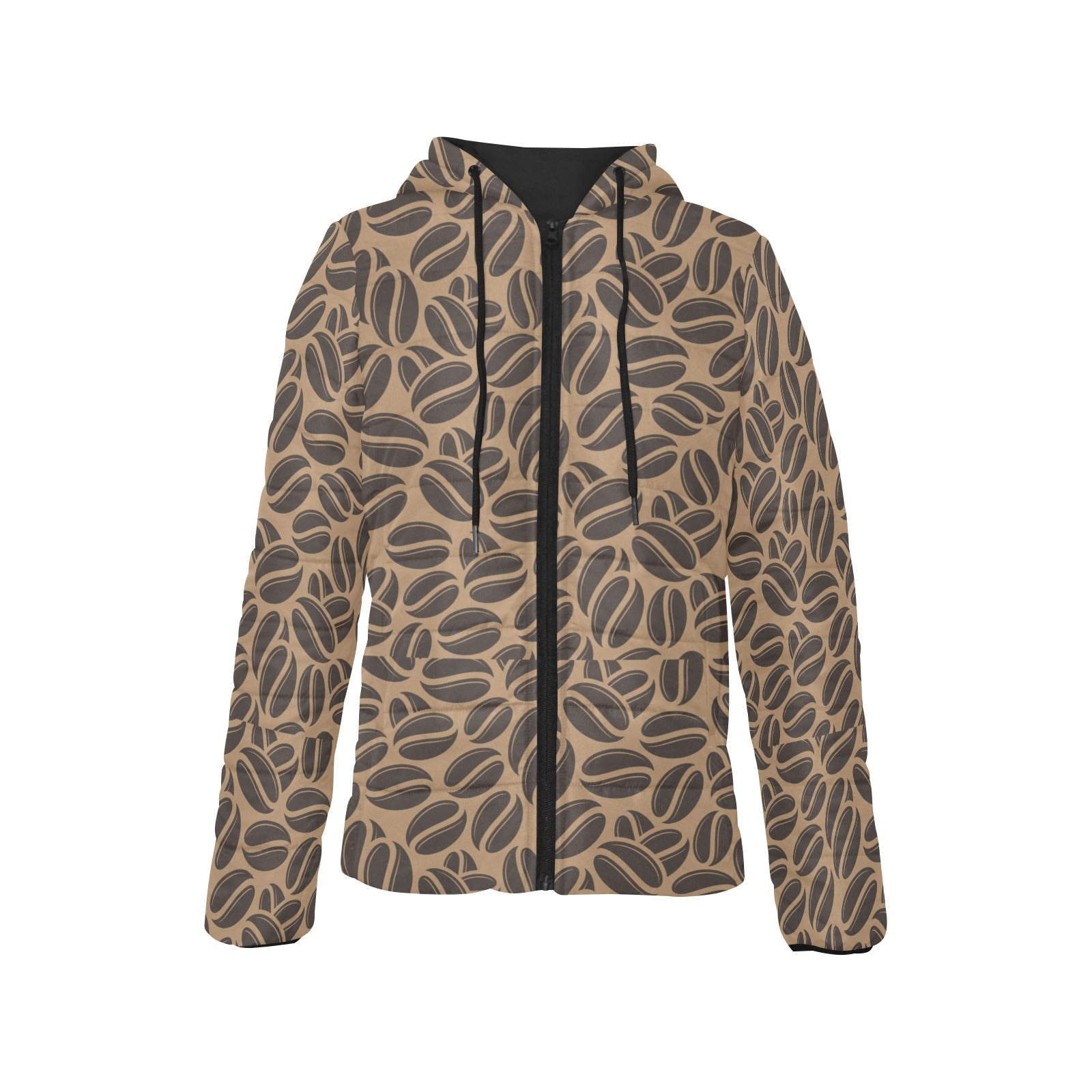 Coffee bean on brown background Women's Padded Hooded Jacket