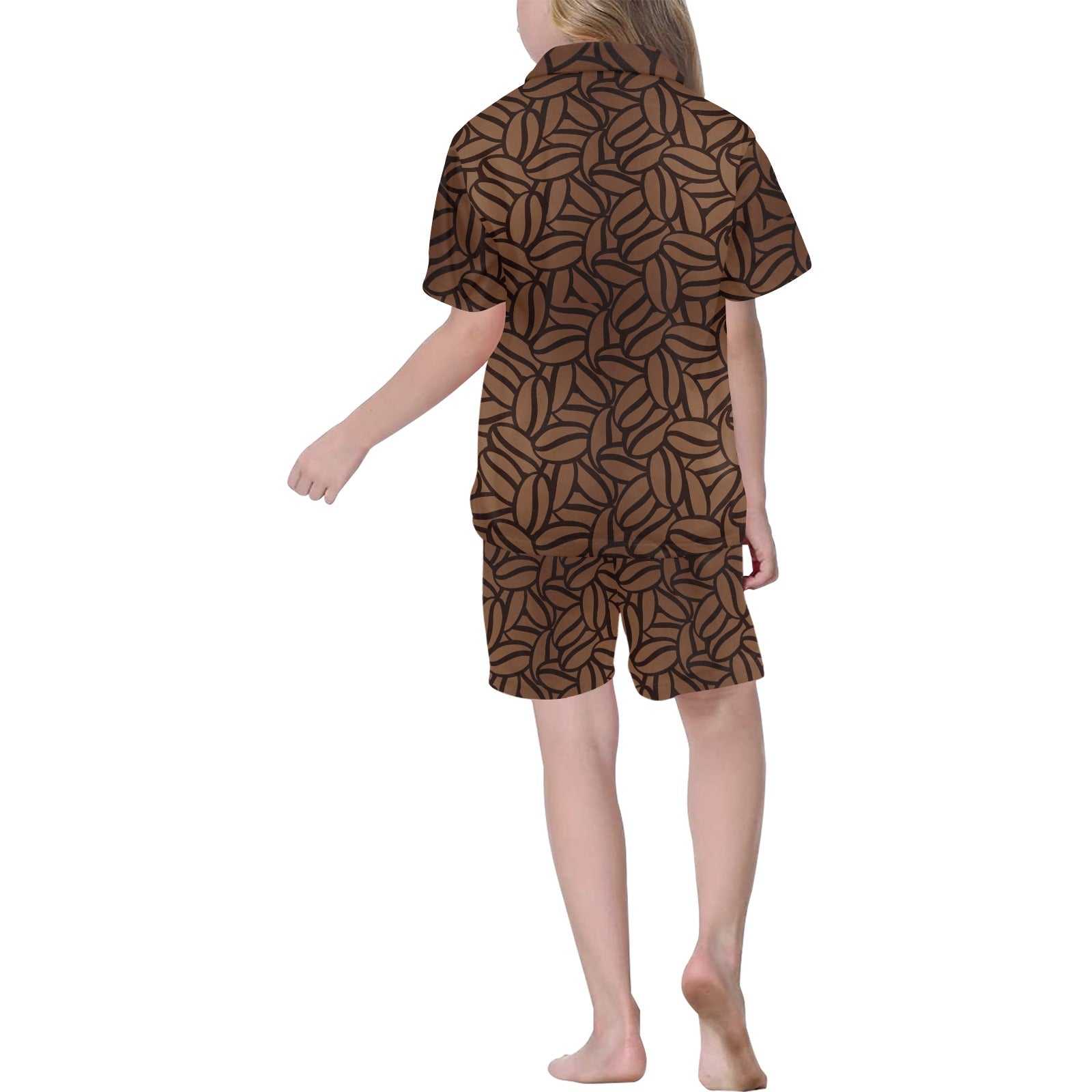 coffee bean pattern Kids' Boys' Girls' V-Neck Short Pajama Set