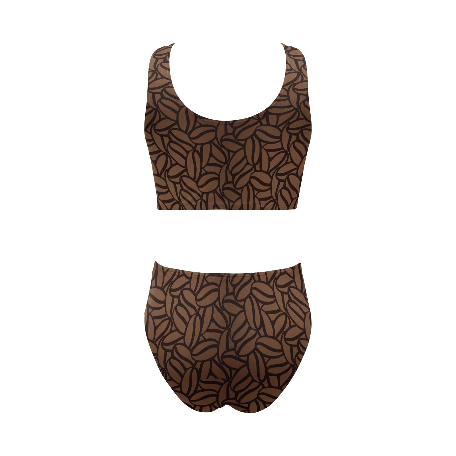 coffee bean pattern Chest Bowknot High Waisted Bikini Swimsuit