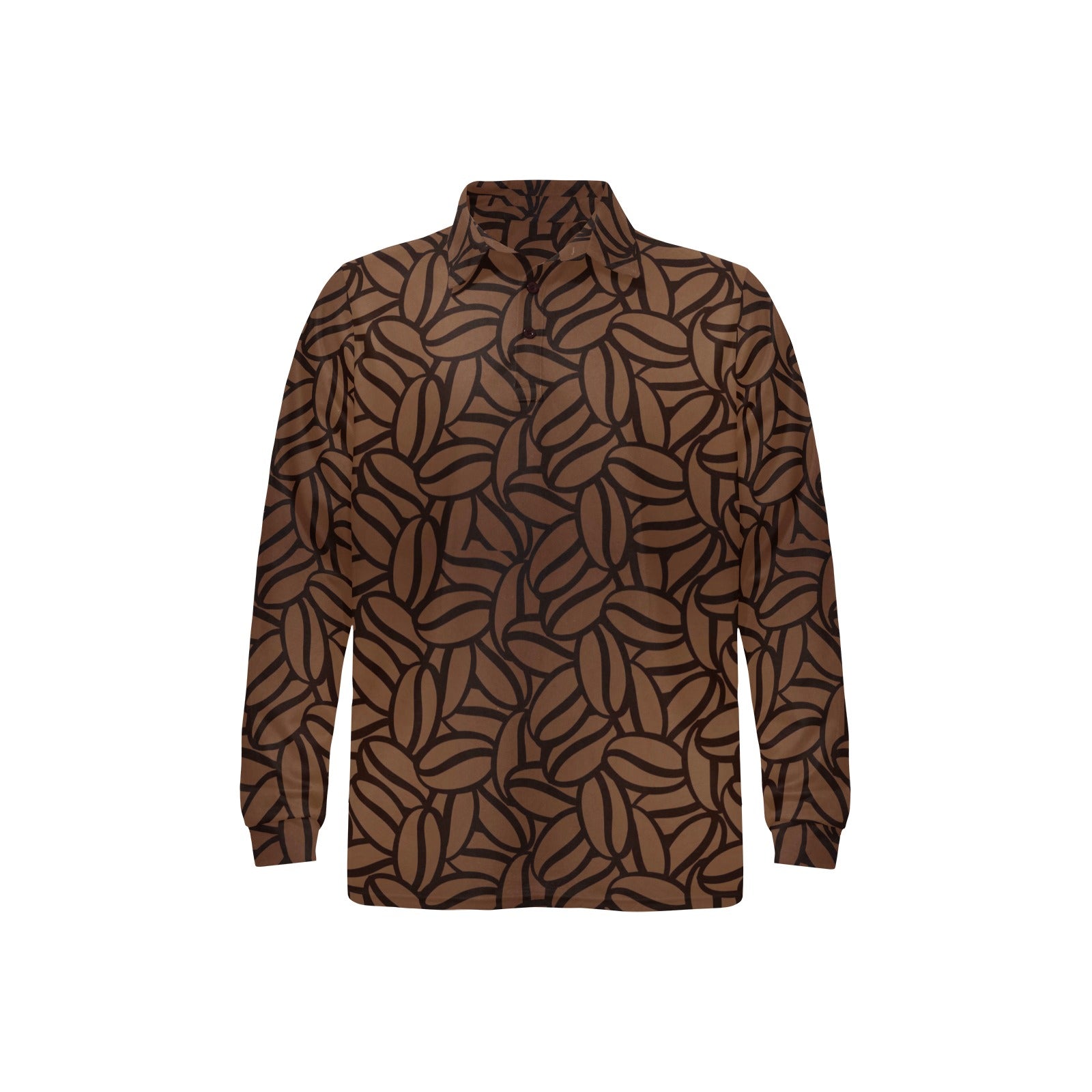 coffee bean pattern Men's Long Sleeve Polo Shirt