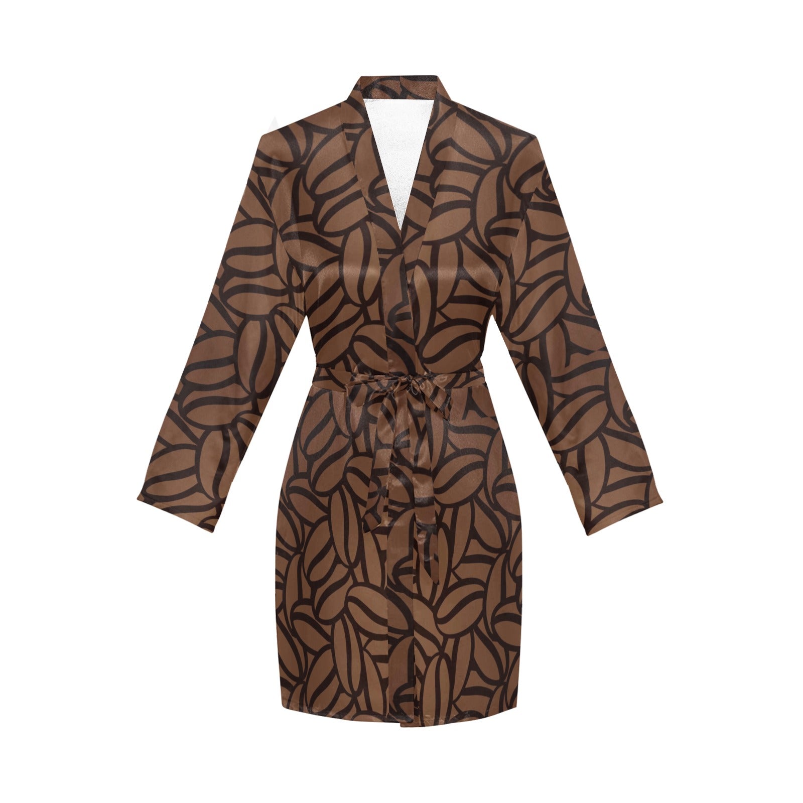 coffee bean pattern Women's Long Sleeve Belted Night Robe
