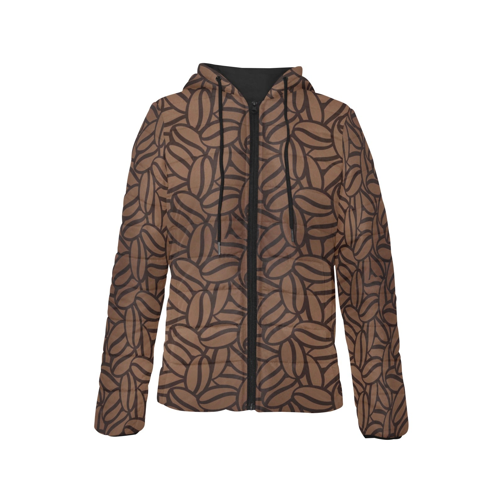 coffee bean pattern Women's Padded Hooded Jacket