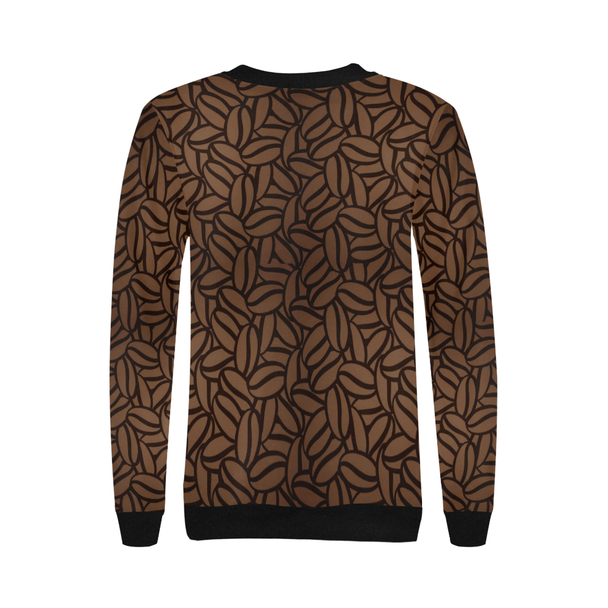 coffee bean pattern Women's Crew Neck Sweatshirt