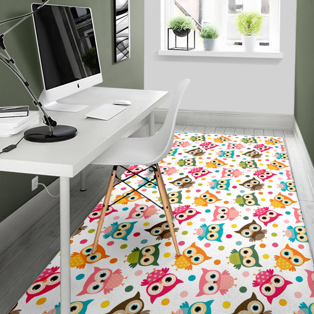Color cute owl pattern Area Rug is a uniqued design and limited item. It made to order, hand printed, and sewn with love in our factory.