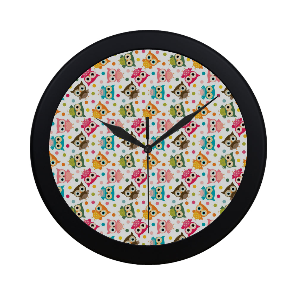 Color cute owl pattern Elegant Black Wall Clock is a uniqued design and limited item. It made to order, hand printed, and sewn with love in our factory.
