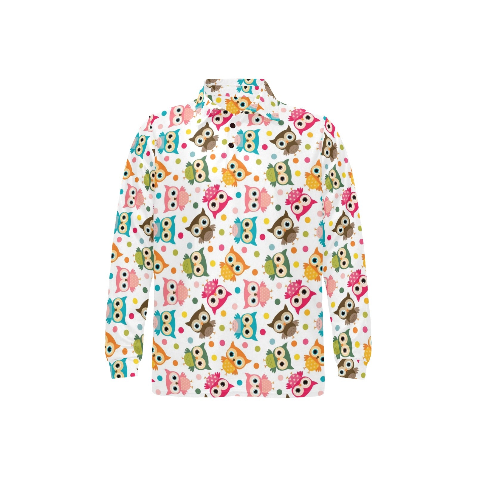 Color cute owl pattern Men's Long Sleeve Polo Shirt