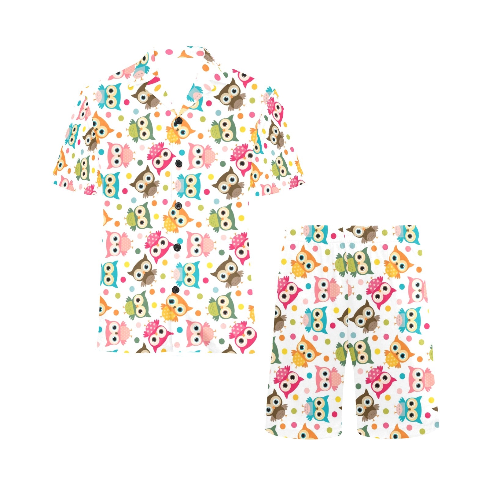 Color cute owl pattern Men's V-Neck Short Pajama Set