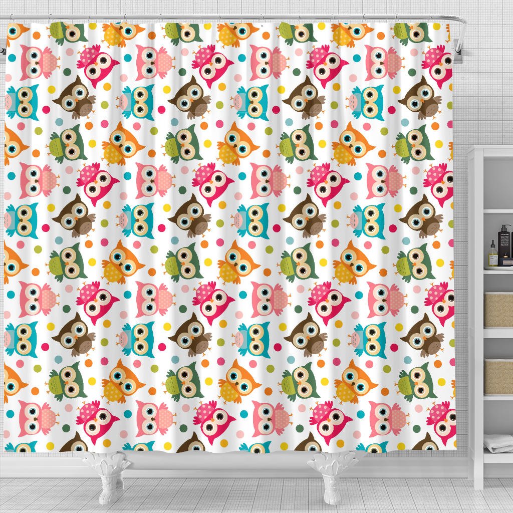 Color cute owl pattern Shower Curtain is a uniqued design and limited item. It made to order, hand printed, and sewn with love in our factory.