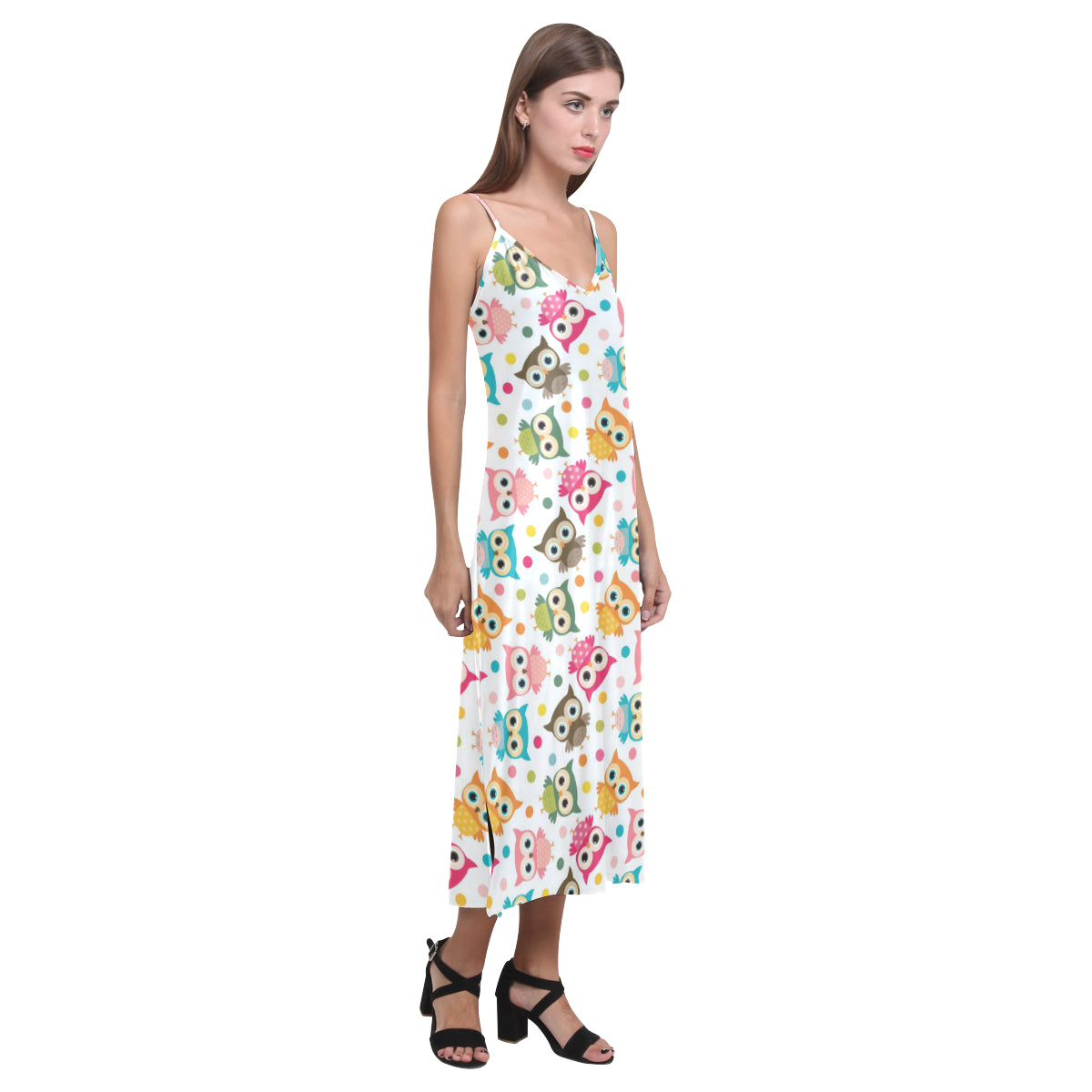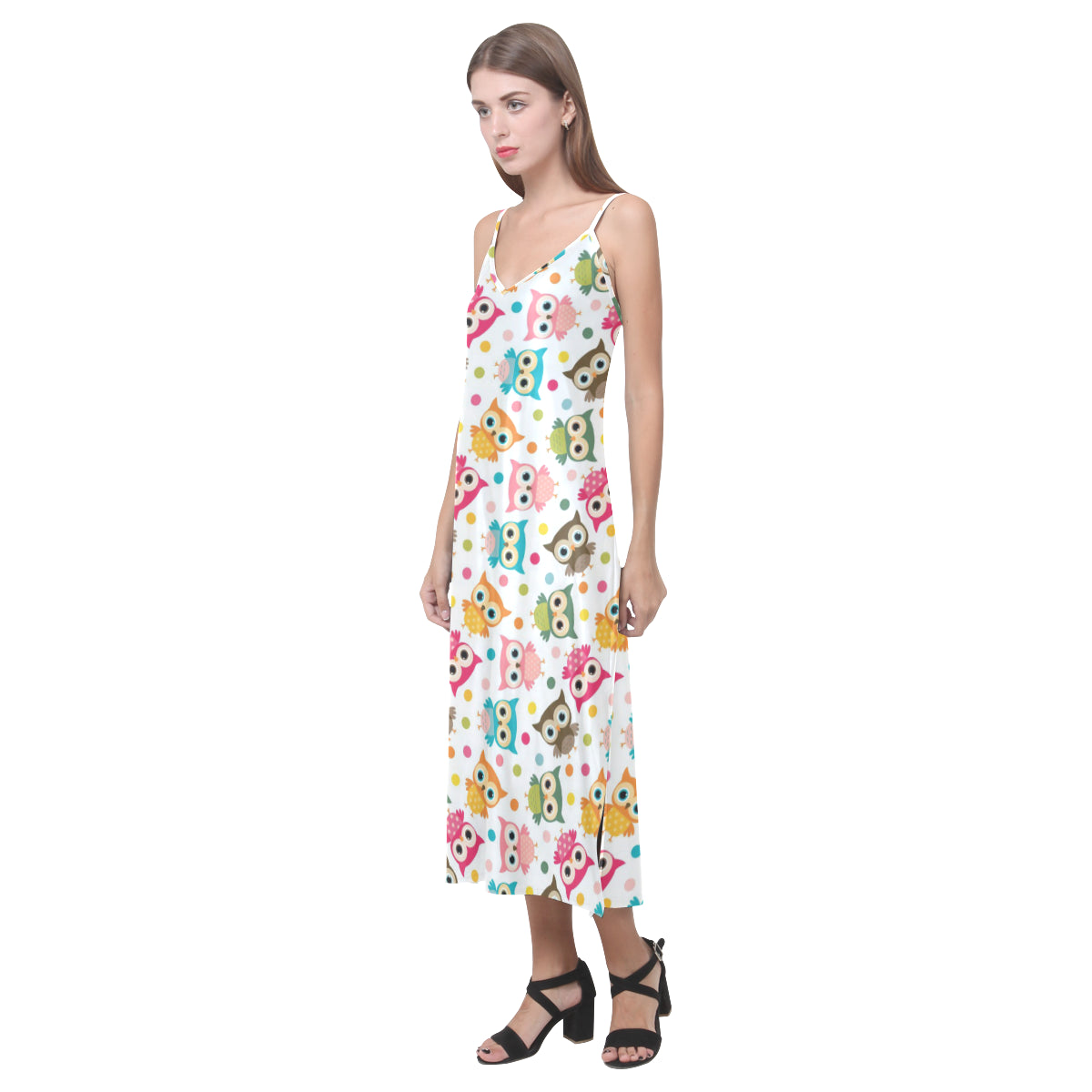 Color cute owl pattern V-Neck Open Fork Long Dress is a uniqued design and limited item. It made to order, hand printed, and sewn with love in our factory.