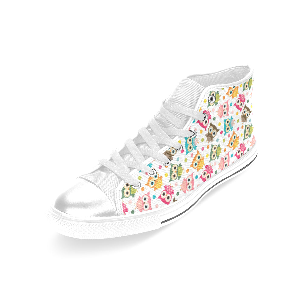 Color cute owl pattern Women's High Top Canvas Shoes White