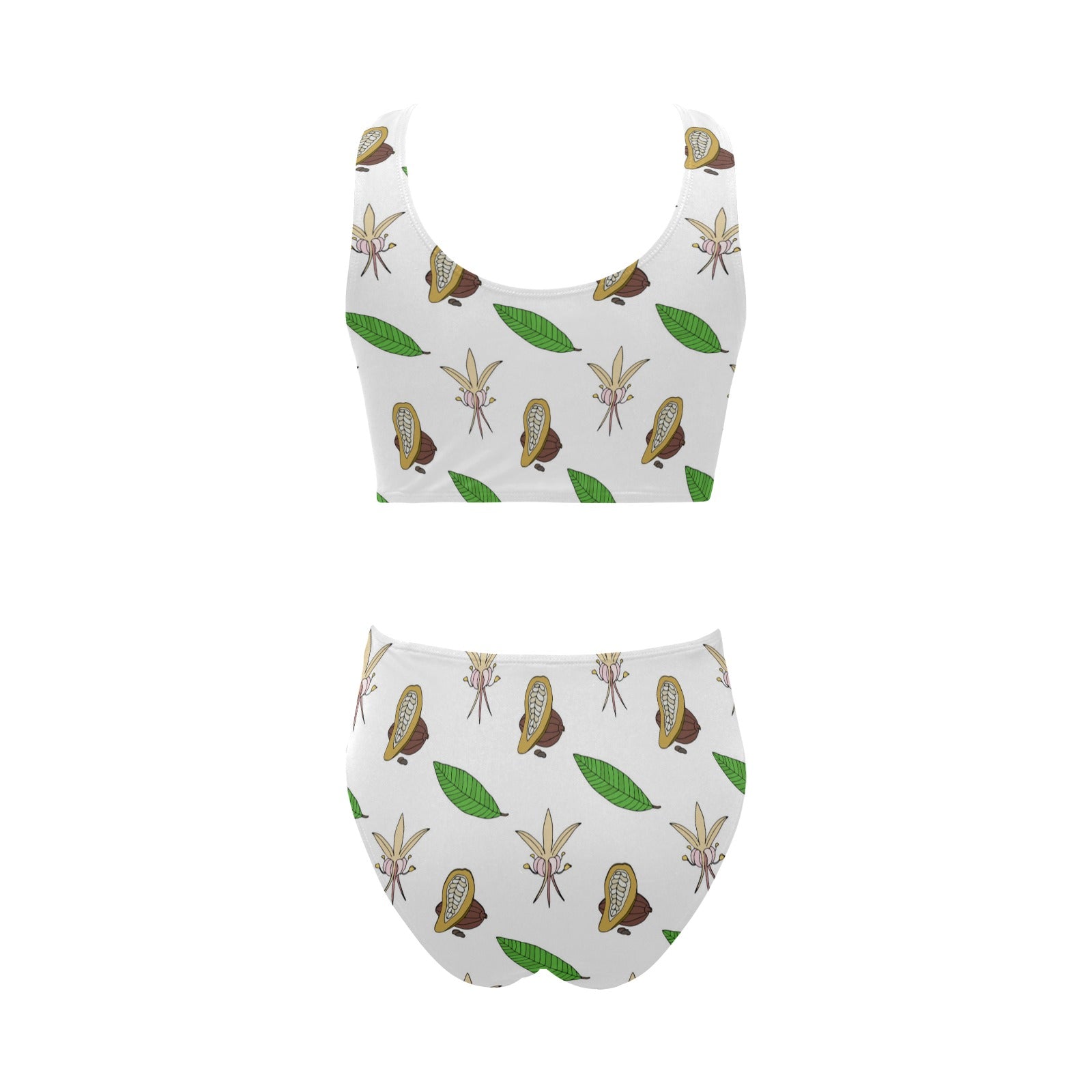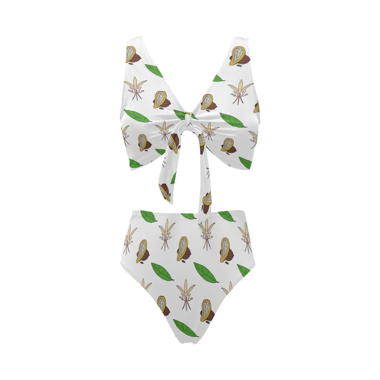 Color hand drawn cacao pattern Chest Bowknot High Waisted Bikini Swimsuit