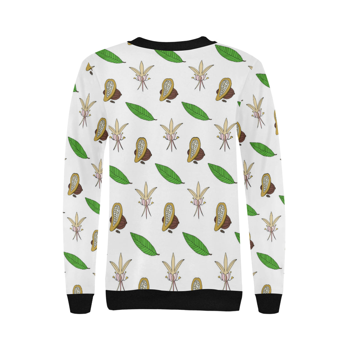 Color hand drawn cacao pattern Women's Crew Neck Sweatshirt is a uniqued design and limited item. It made to order, hand printed, and sewn with love in our factory.