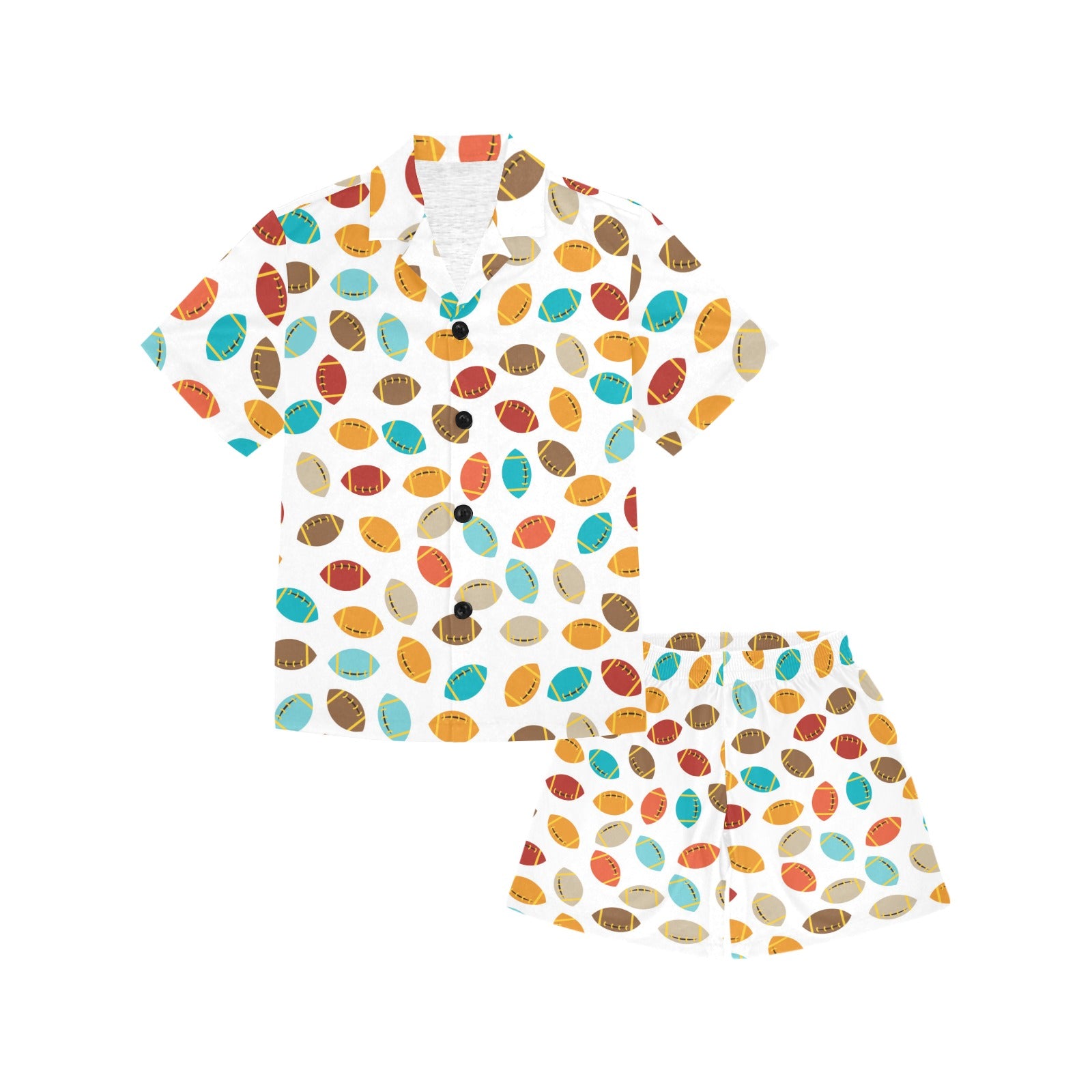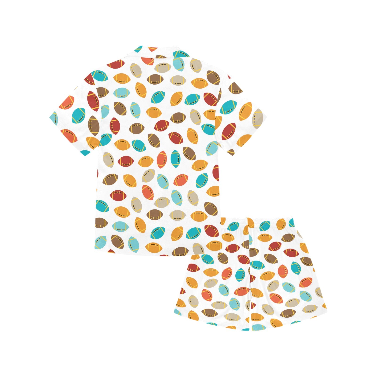 Colorful american football ball pattern Kids' Boys' Girls' V-Neck Short Pajama Set