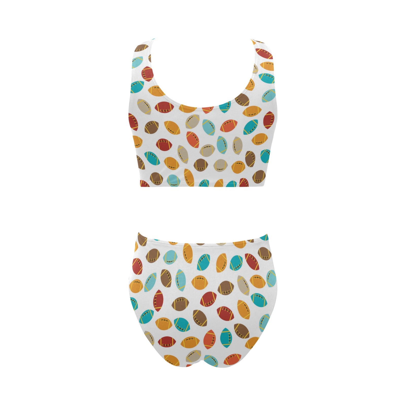 Colorful american football ball pattern Chest Bowknot High Waisted Bikini Swimsuit