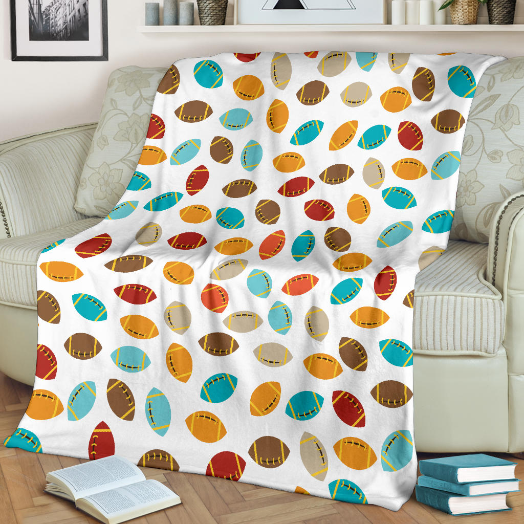 Colorful american football ball pattern Premium Blanket is a uniqued design and limited item. It made to order, hand printed, and sewn with love in our factory.