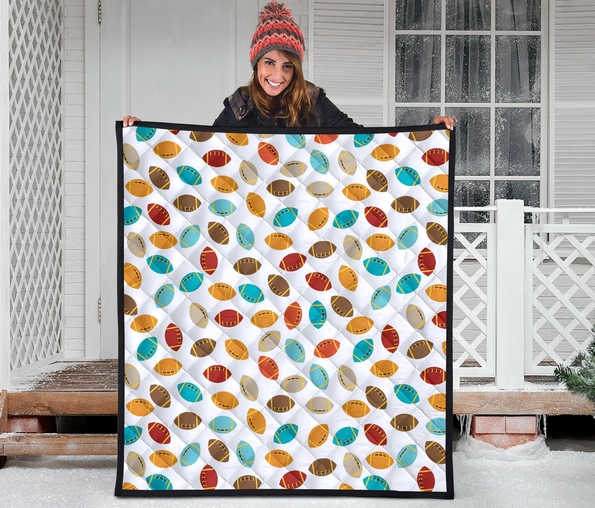 Colorful American Football Ball Pattern Premium Quilt is a uniqued design and limited item. It made to order, hand printed, and sewn with love in our factory.