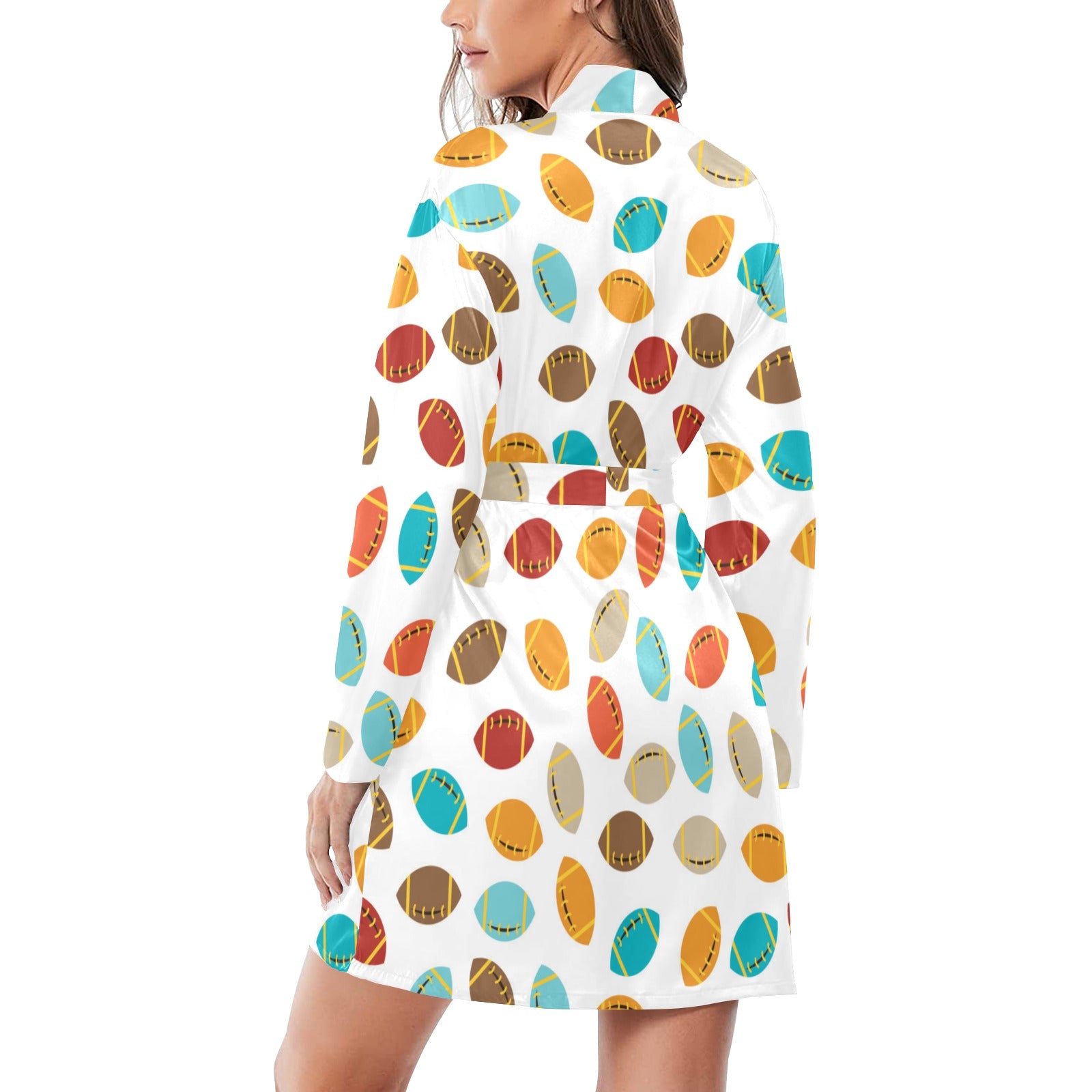 Colorful american football ball pattern Women's Long Sleeve Belted Night Robe