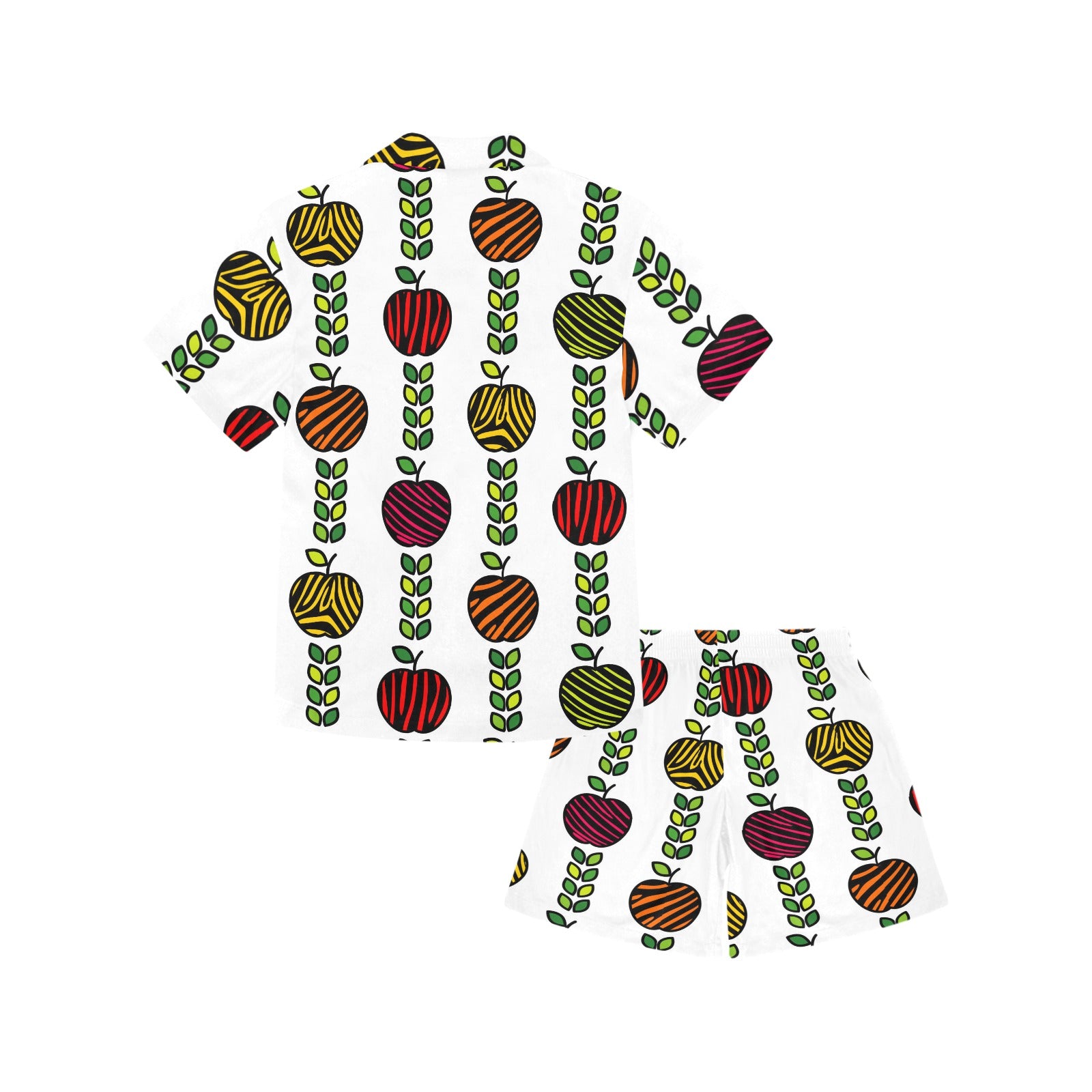 colorful apples leave zebra stripe Kids' Boys' Girls' V-Neck Short Pajama Set