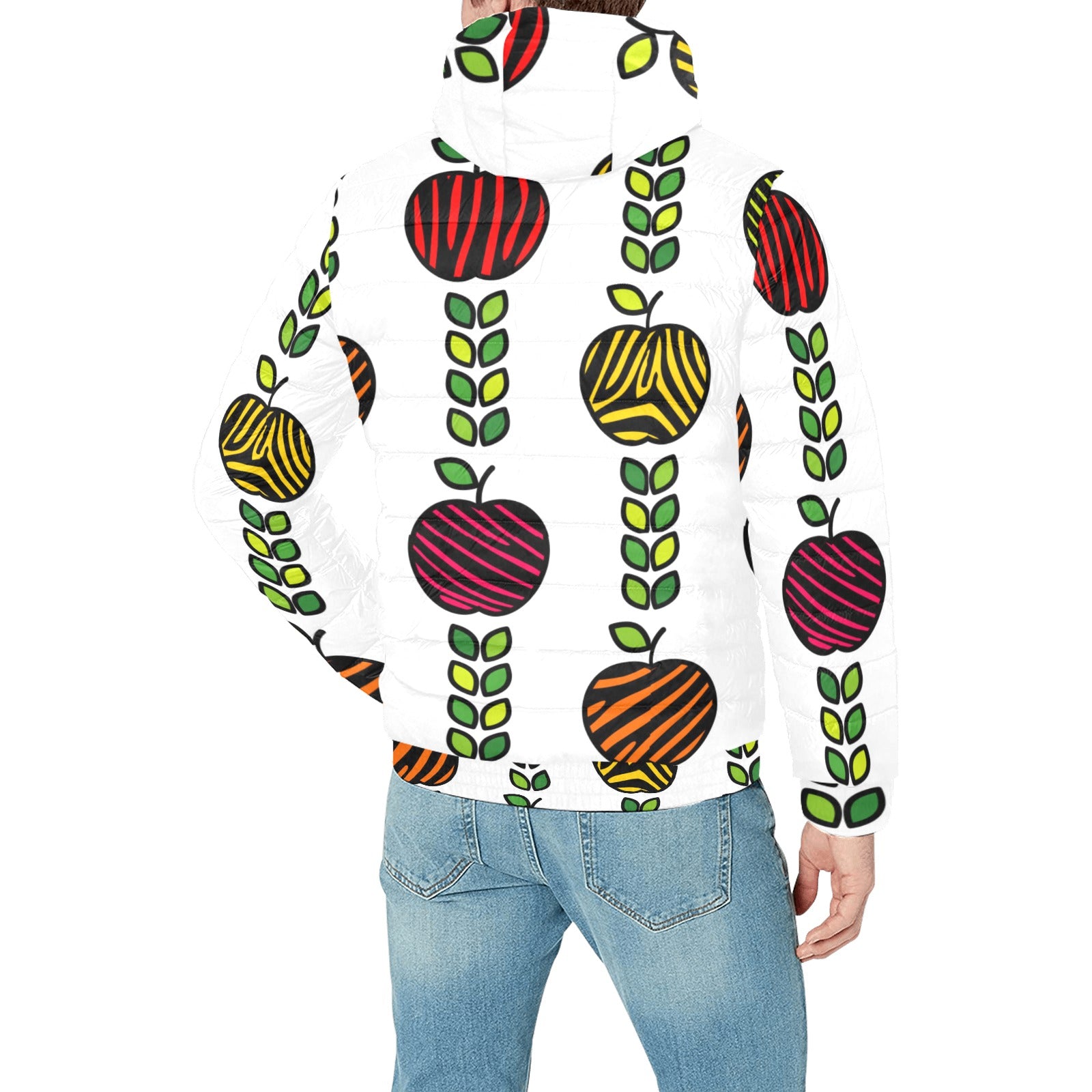 colorful apples leave zebra stripe Men's Padded Hooded Jacket