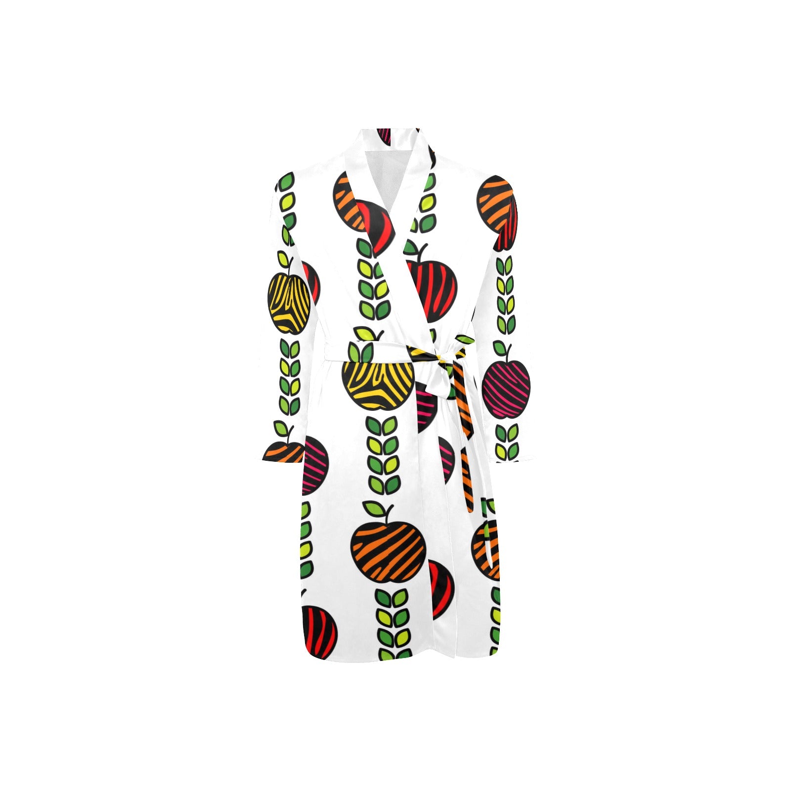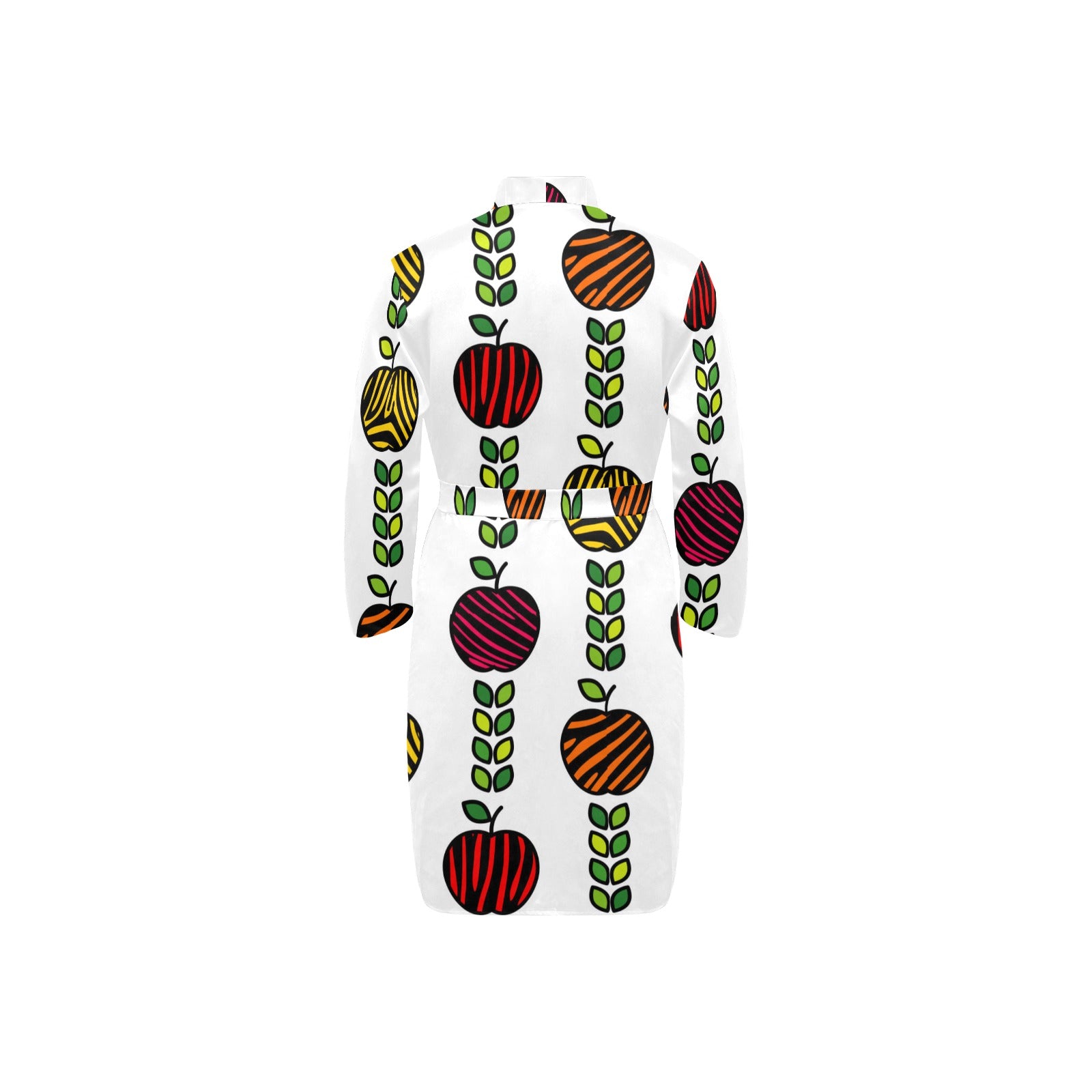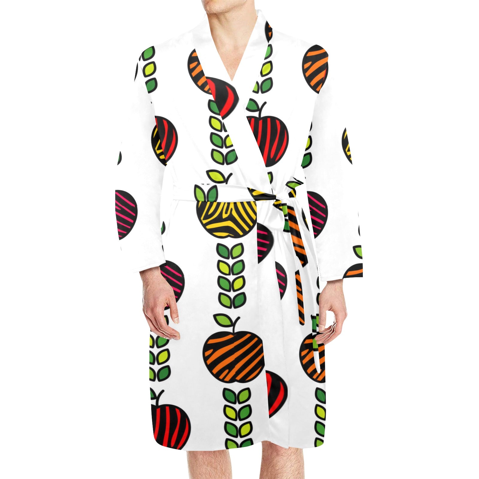 colorful apples leave zebra stripe Men's Long Sleeve Belted Night Robe