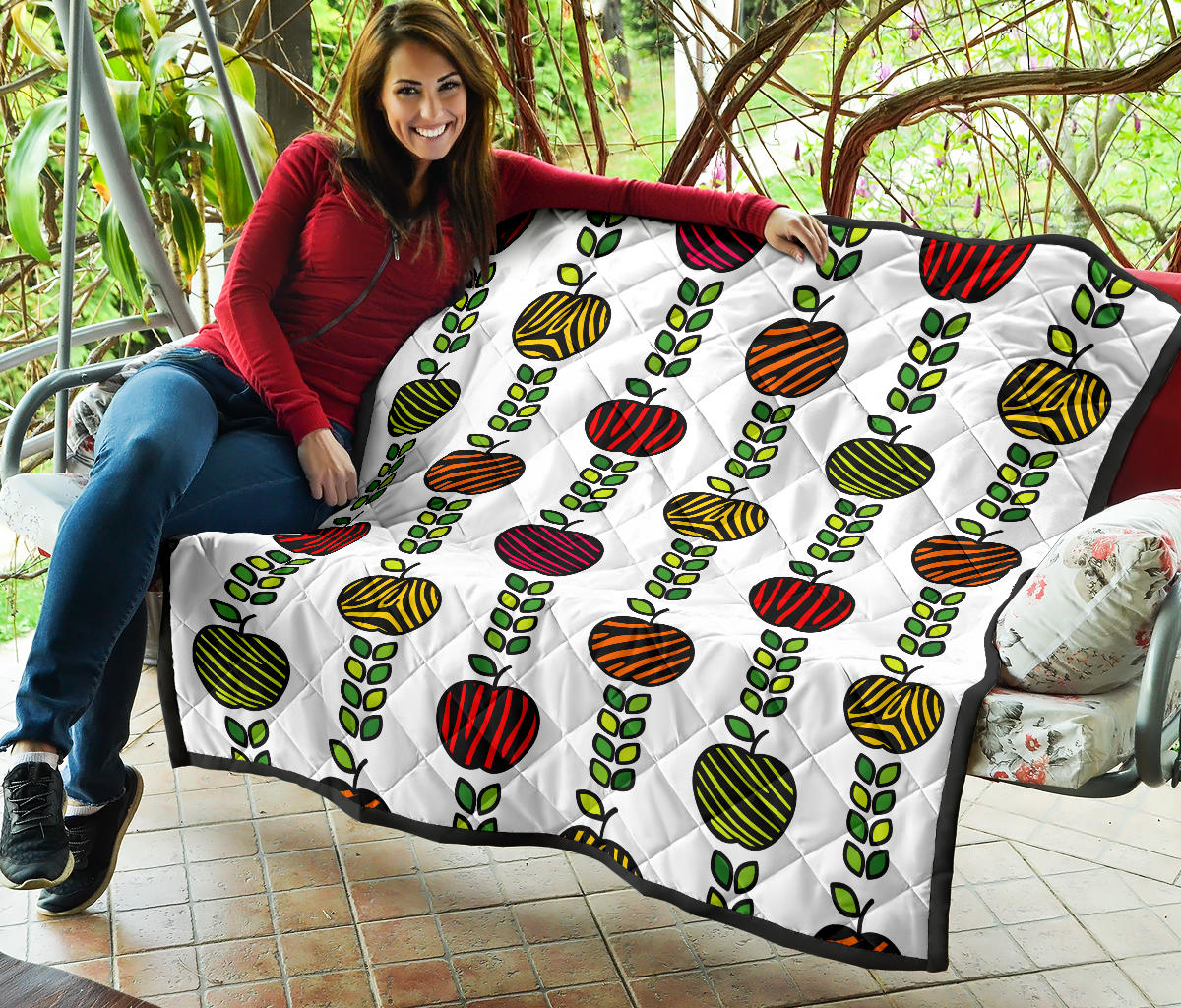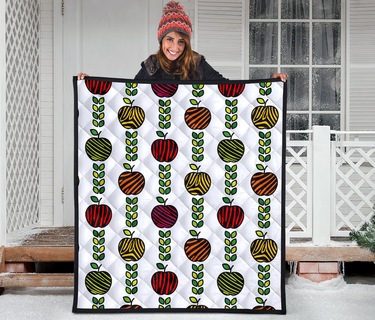 Colorful Apples Leave Zebra Stripe Premium Quilt is a uniqued design and limited item. It made to order, hand printed, and sewn with love in our factory.