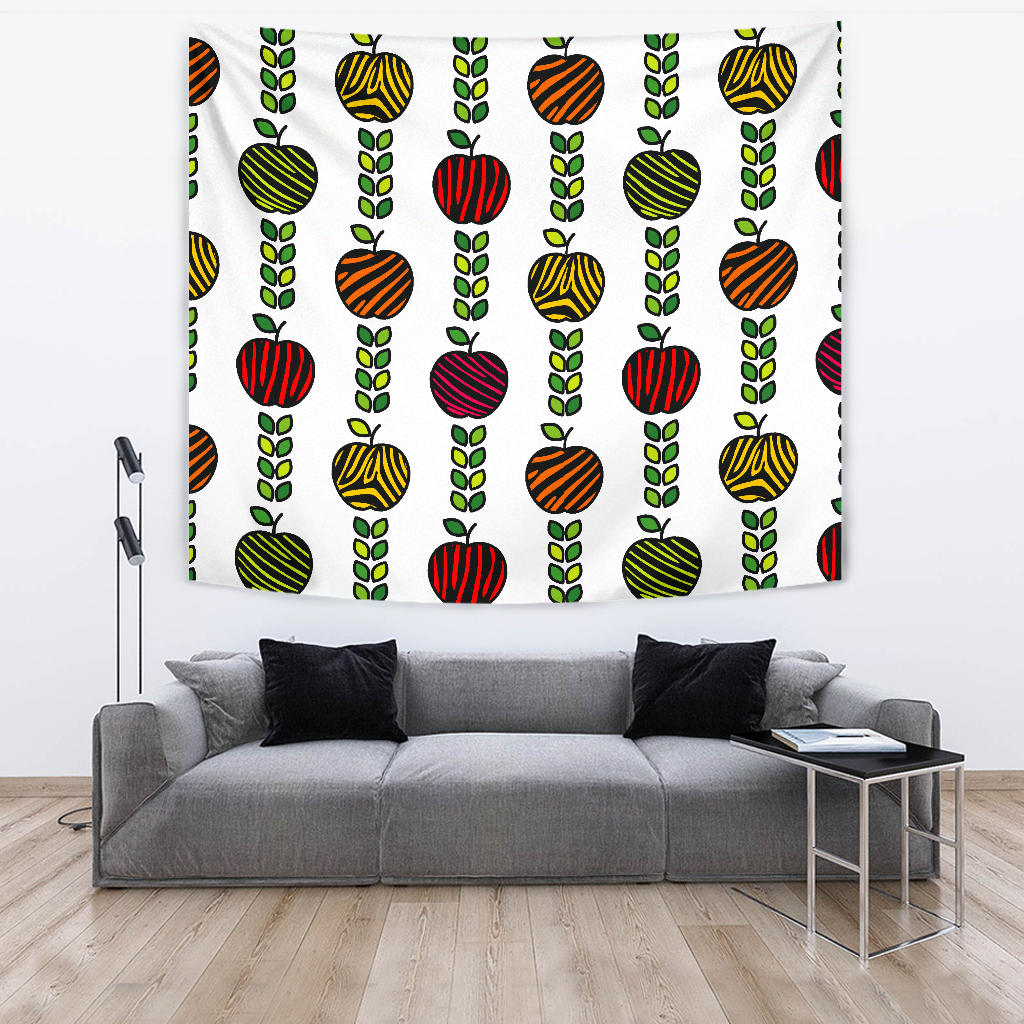 Colorful Apples Leave Zebra Stripe Wall Tapestry