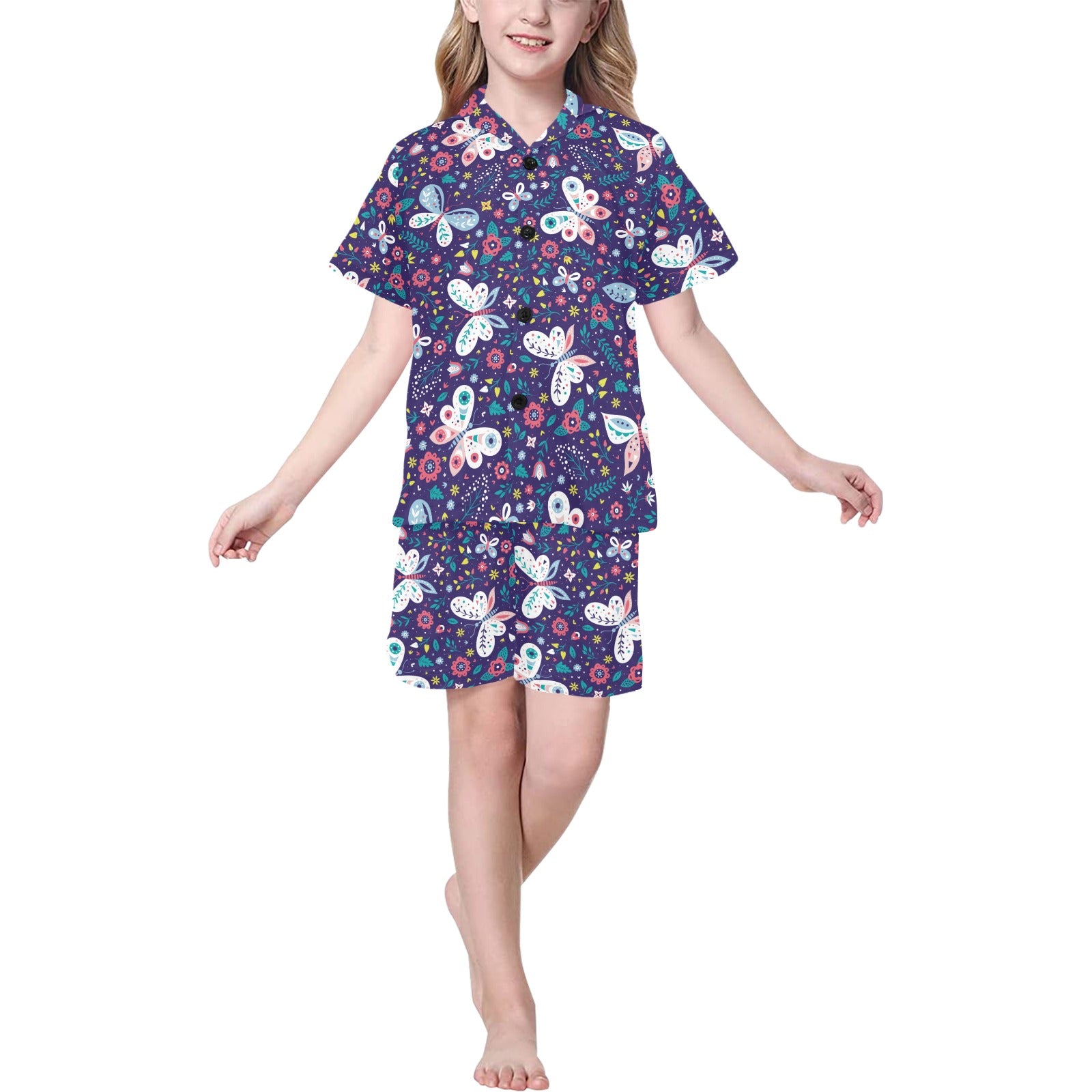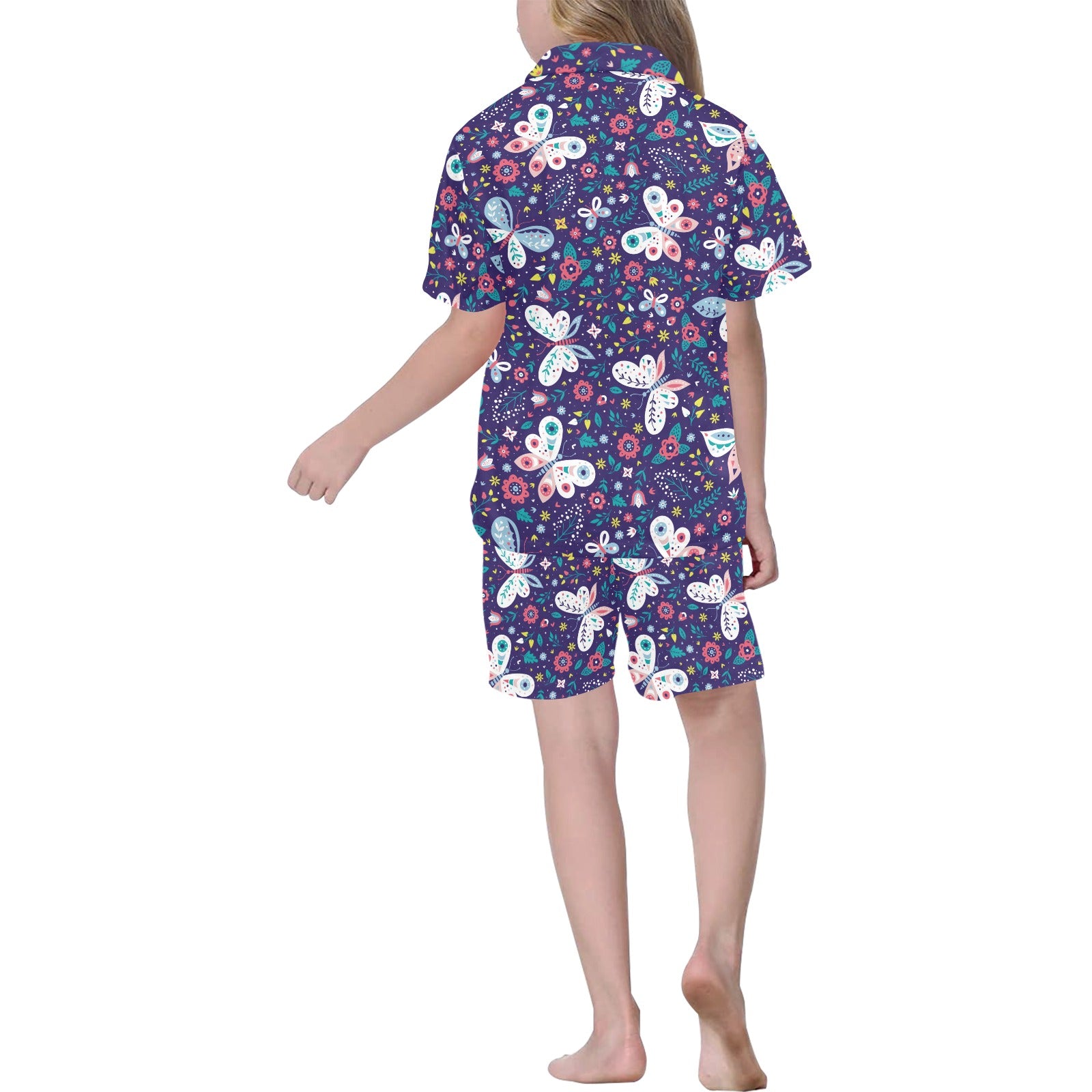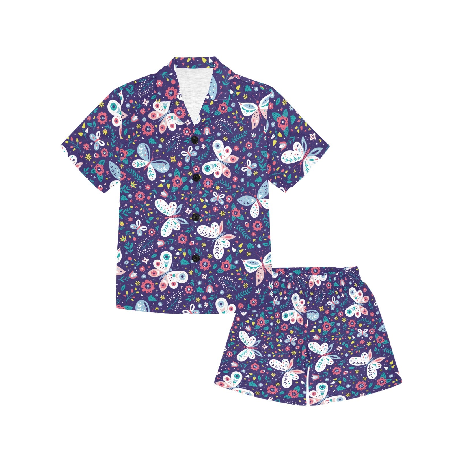 Colorful butterfly flower pattern.eps Kids' Boys' Girls' V-Neck Short Pajama Set