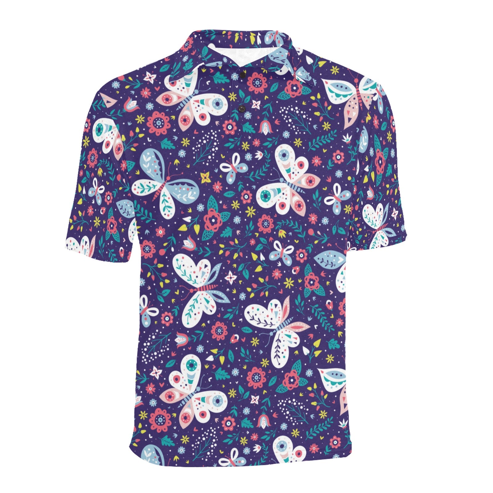 Colorful butterfly flower pattern.eps Men's All Over Print Polo Shirt