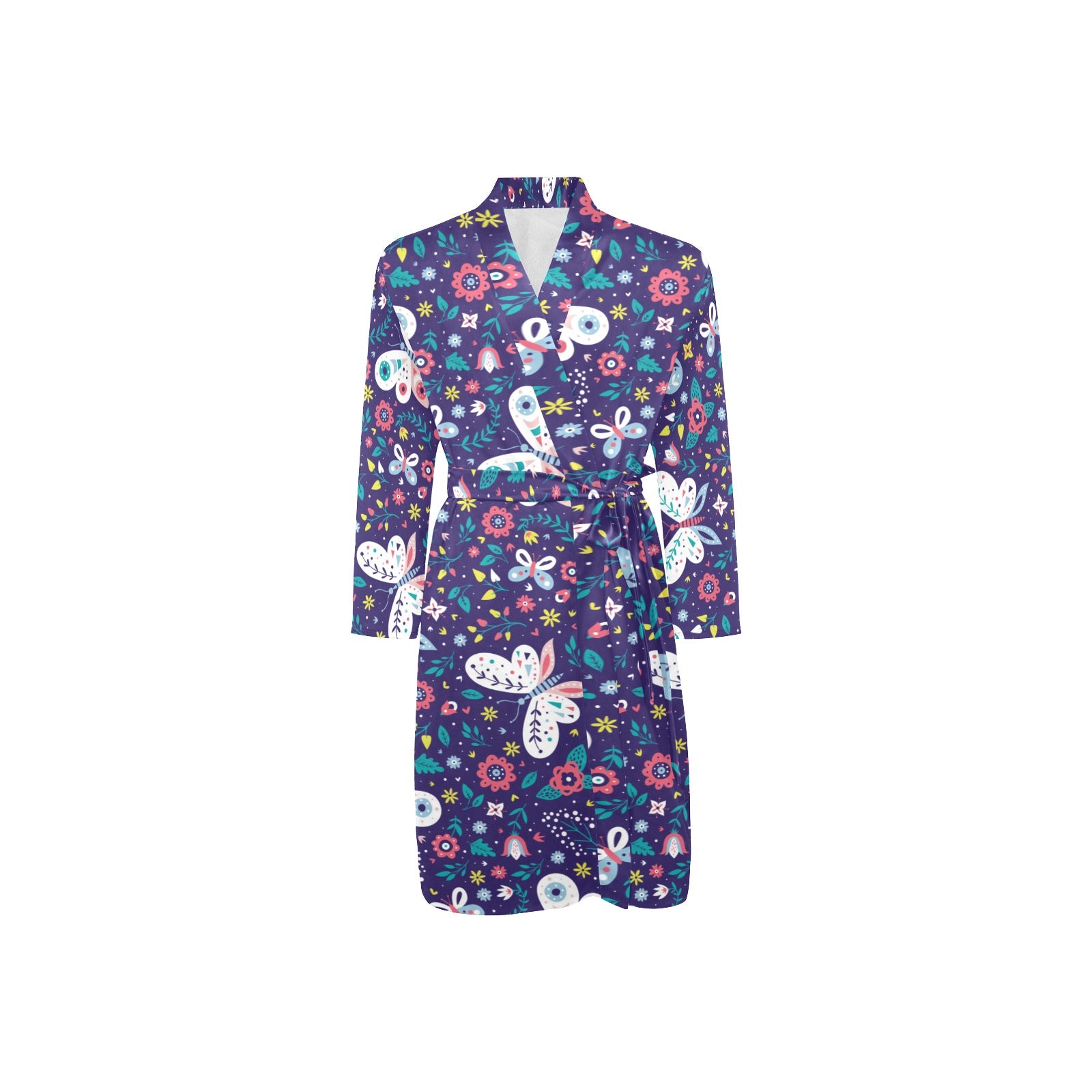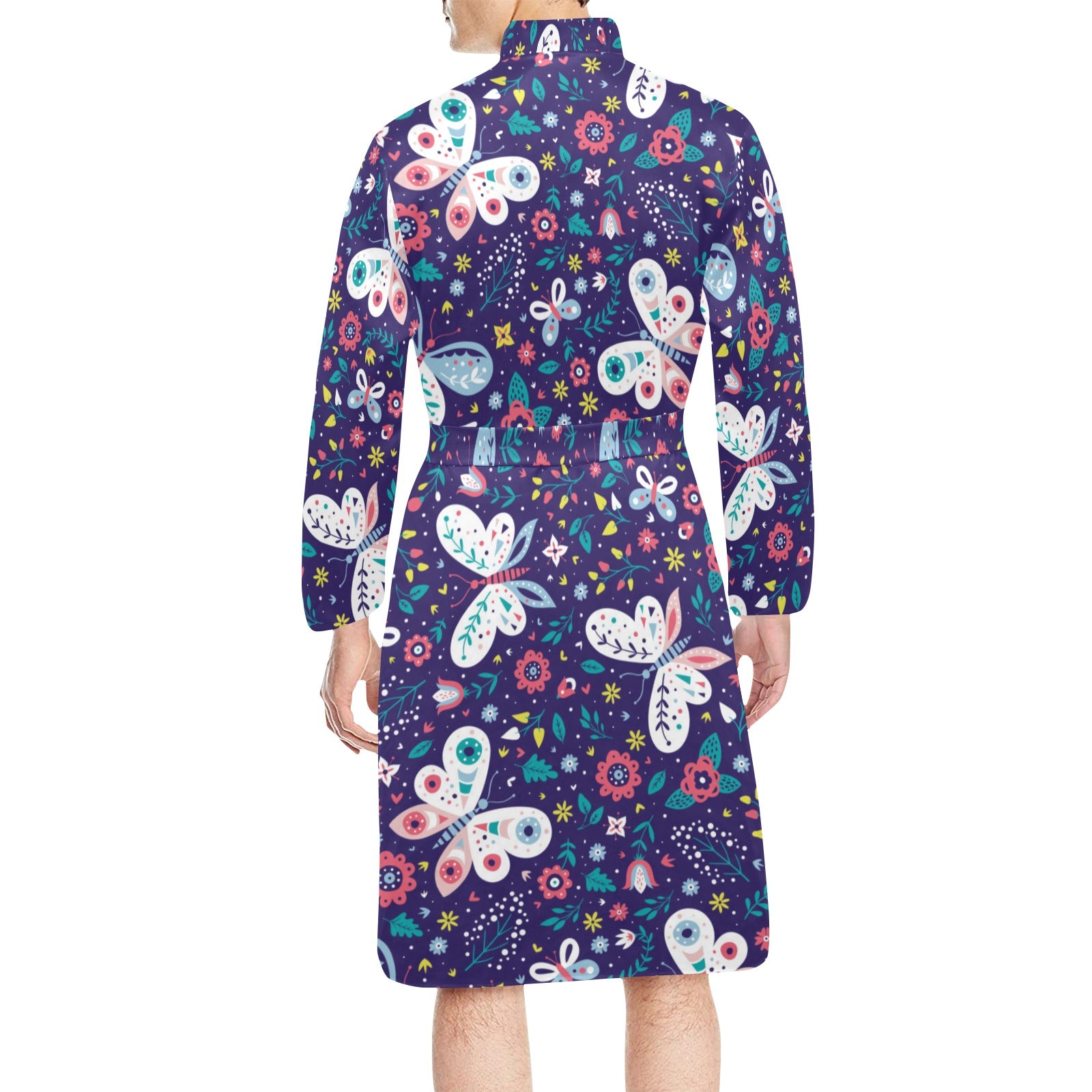 Colorful butterfly flower pattern.eps Men's Long Sleeve Belted Night Robe