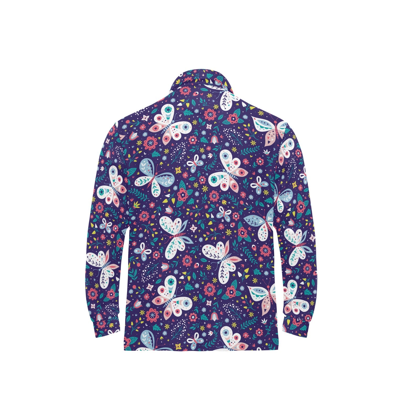 Colorful butterfly flower pattern.eps Men's Long Sleeve Polo Shirt