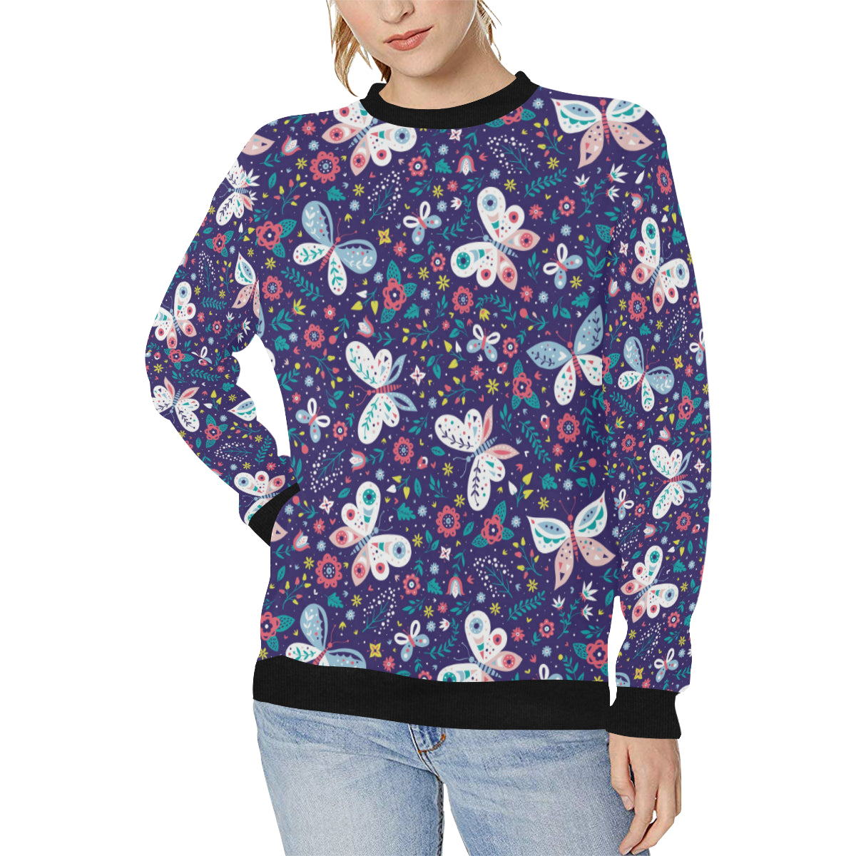 Colorful butterfly flower pattern.eps Women's Crew Neck Sweatshirt