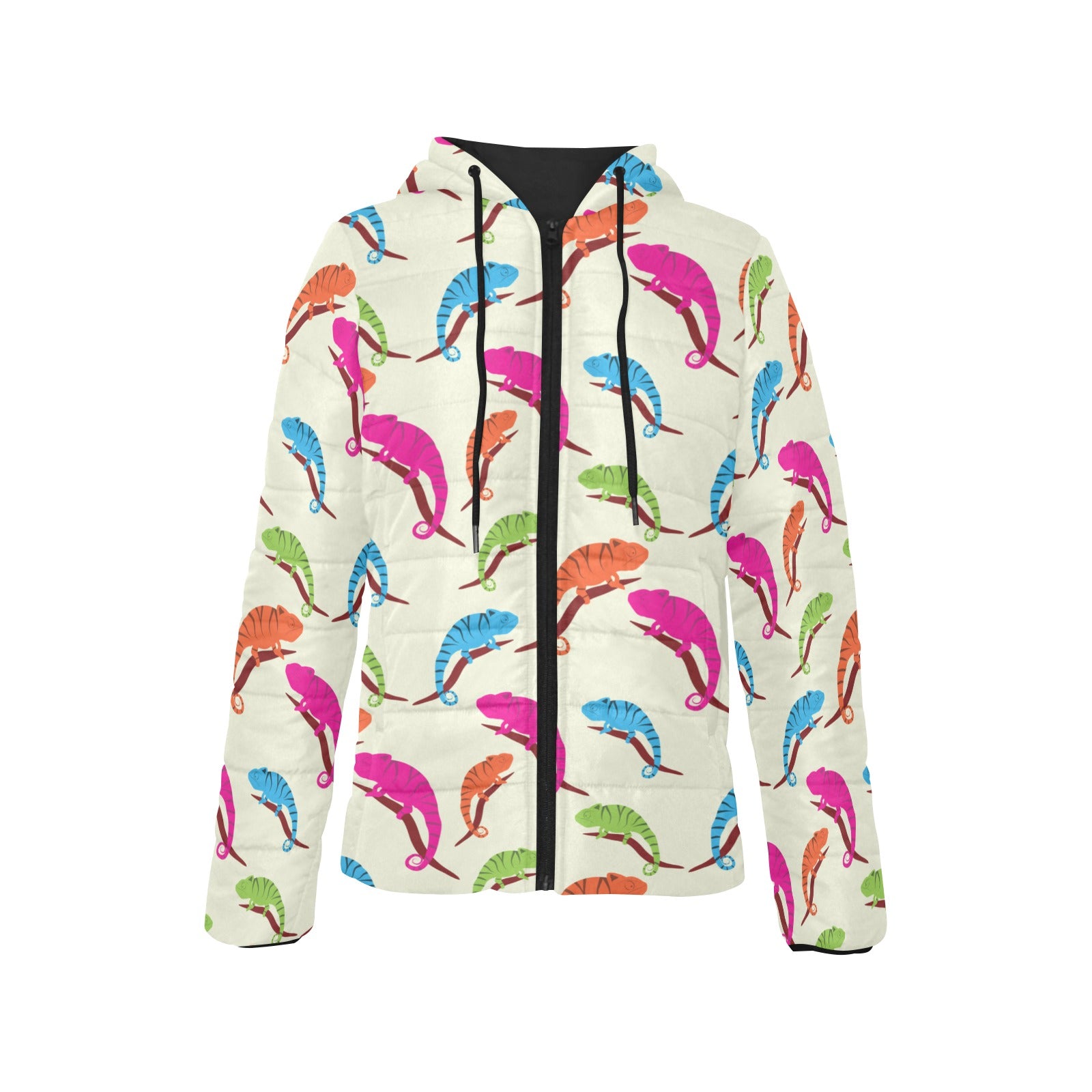 Colorful Chameleon lizard pattern Women's Padded Hooded Jacket