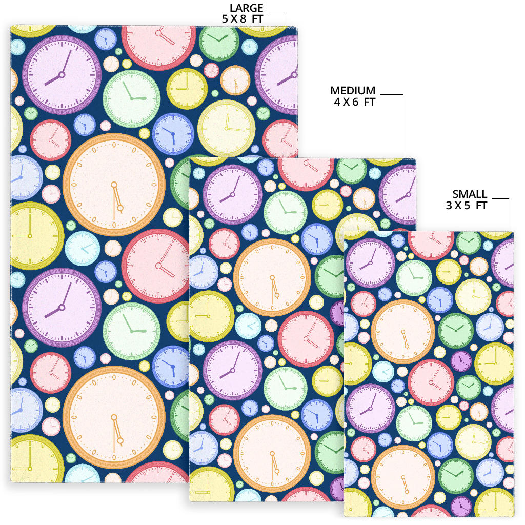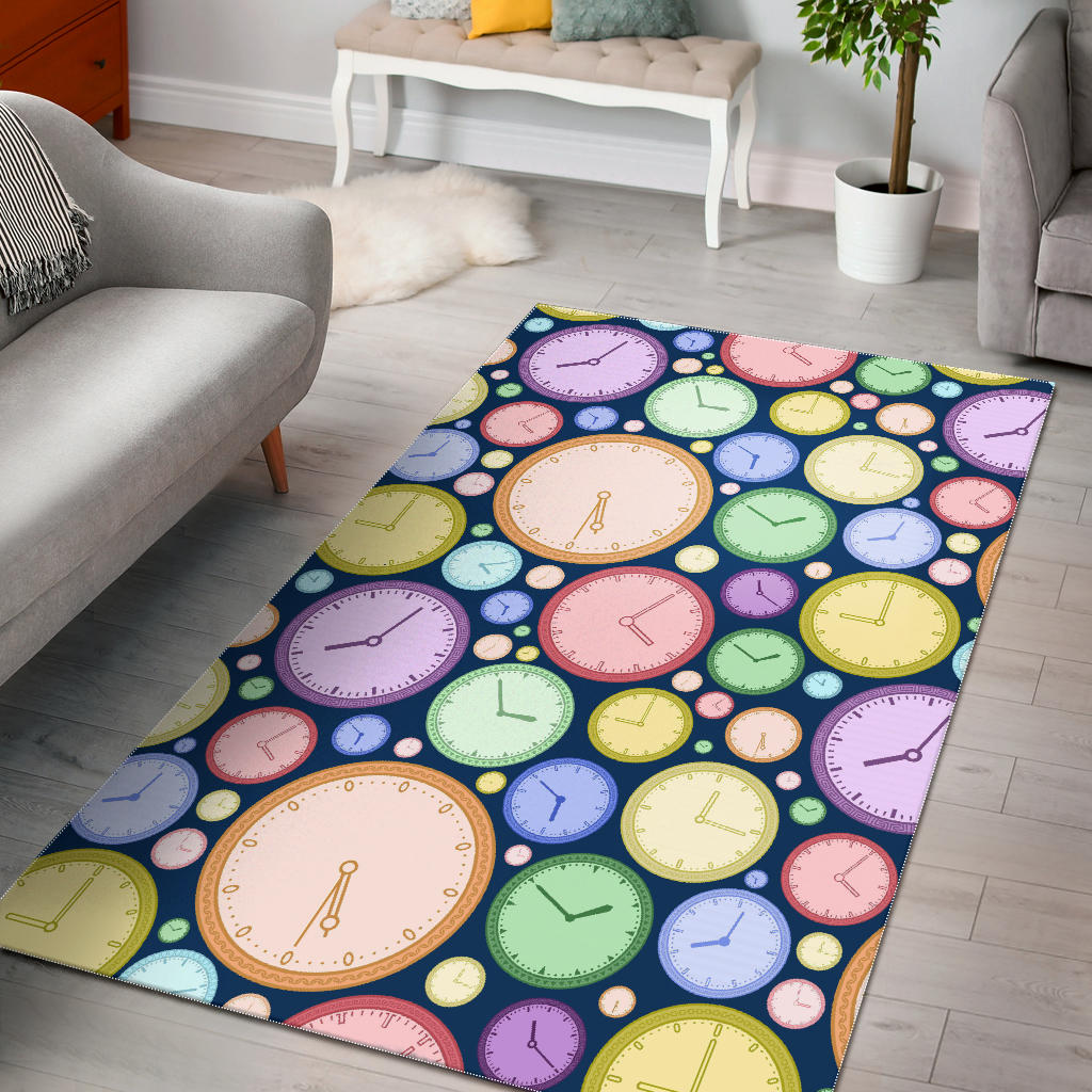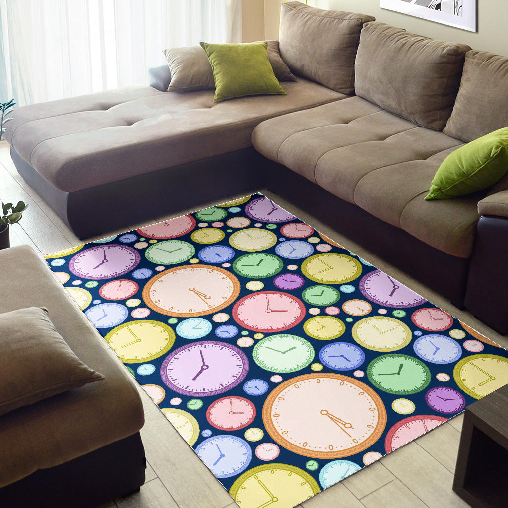 Colorful clock background Area Rug is a uniqued design and limited item. It made to order, hand printed, and sewn with love in our factory.