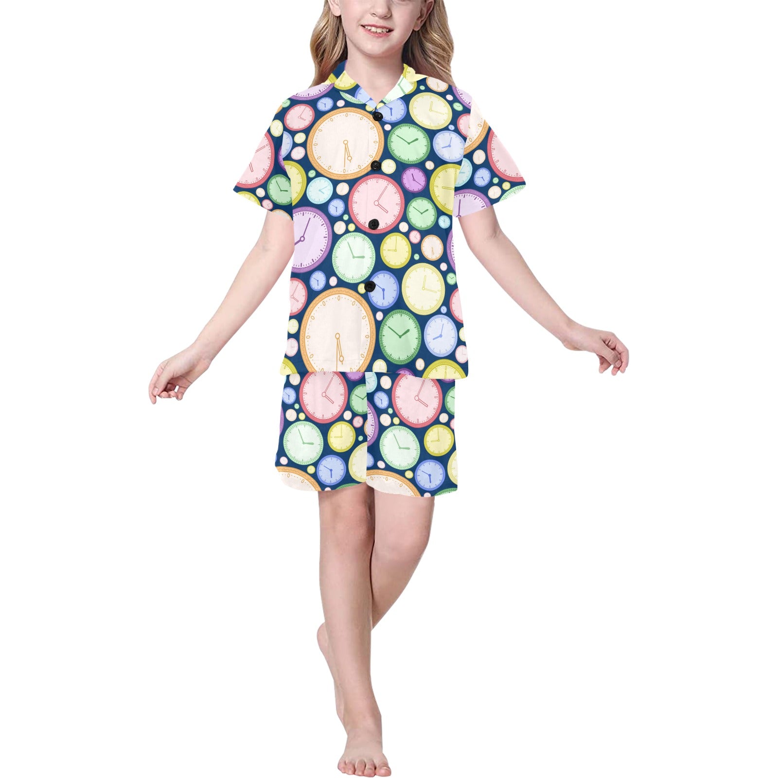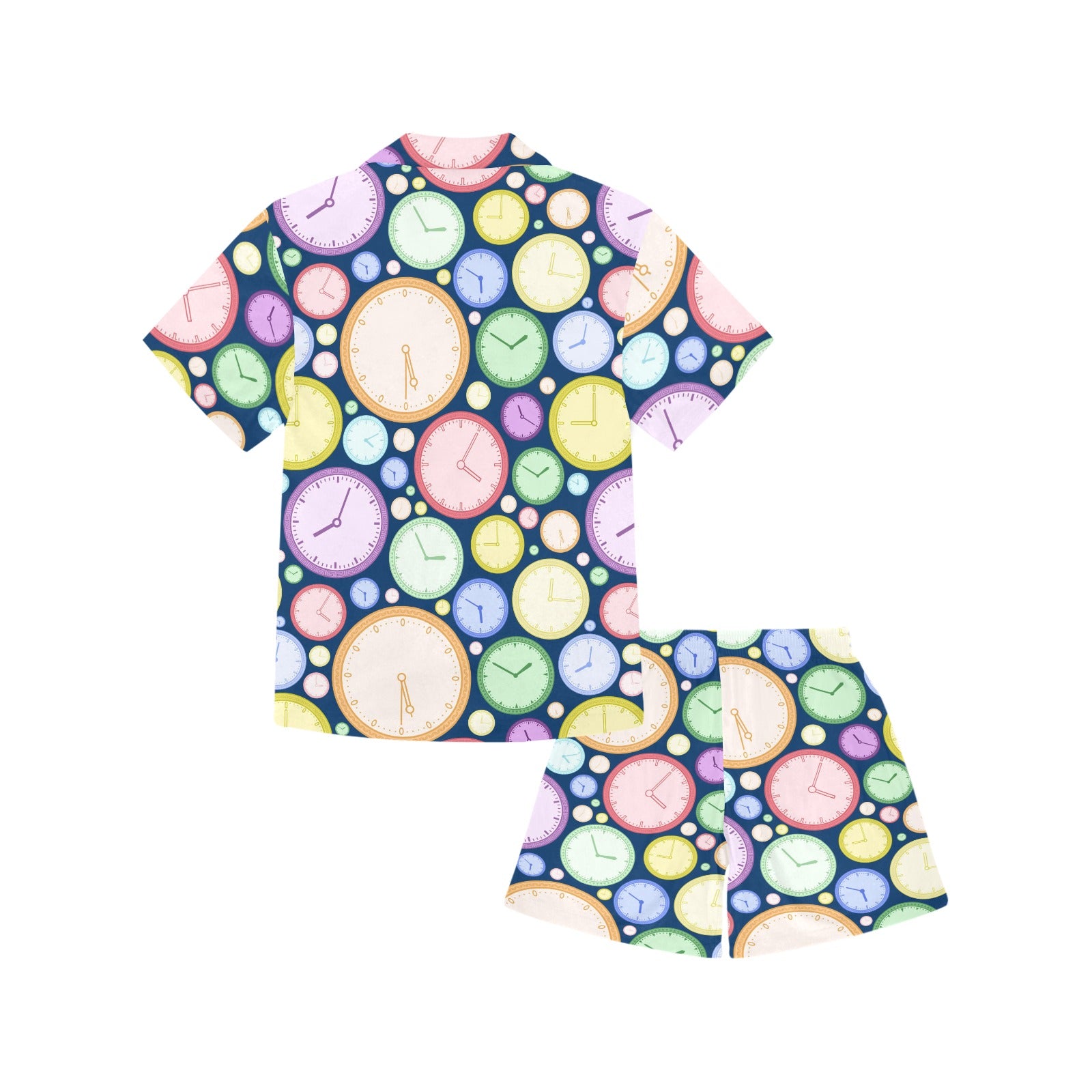 Colorful clock background Kids' Boys' Girls' V-Neck Short Pajama Set
